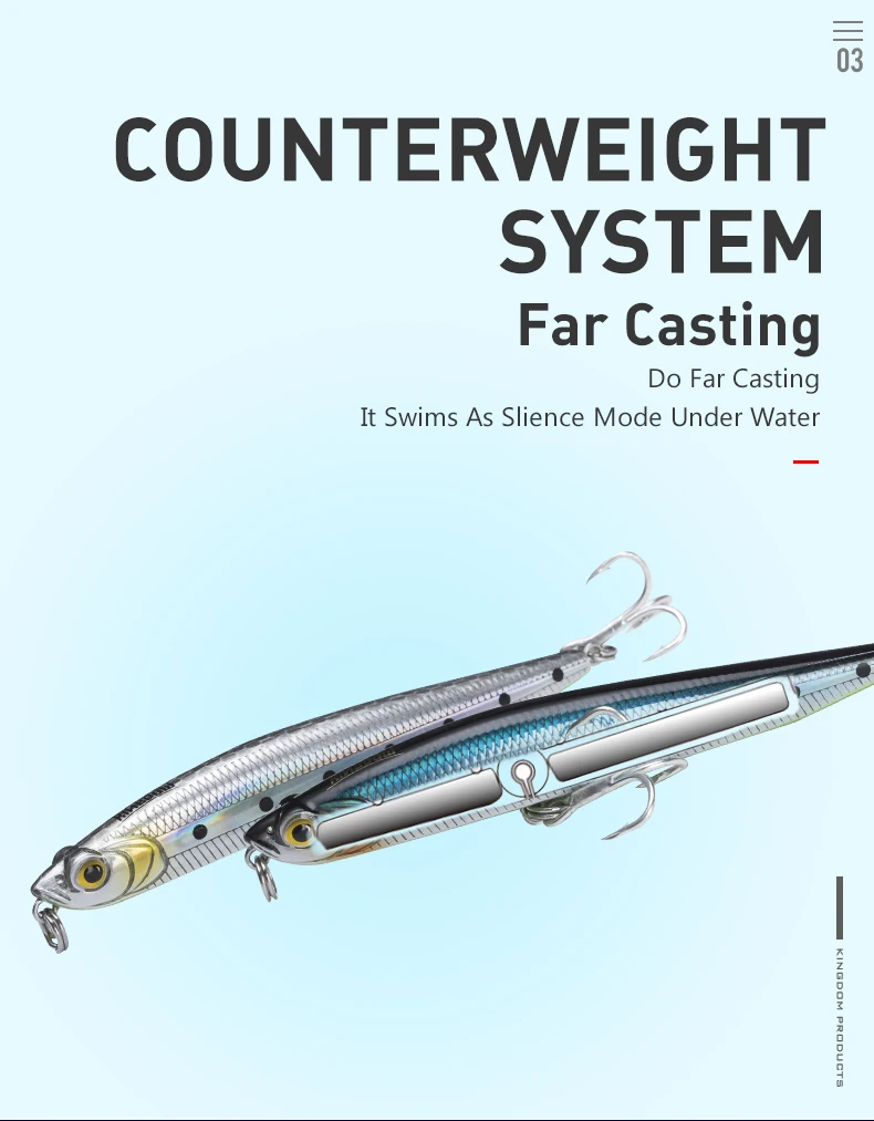 Señuelo de pesca Kingdom Sea, cebo tipo lápiz que se hunde, Wobblers de 80mm y 95mm, cebos duros artificiales, Lucio, trucha, aparejos de pesca Swimbait