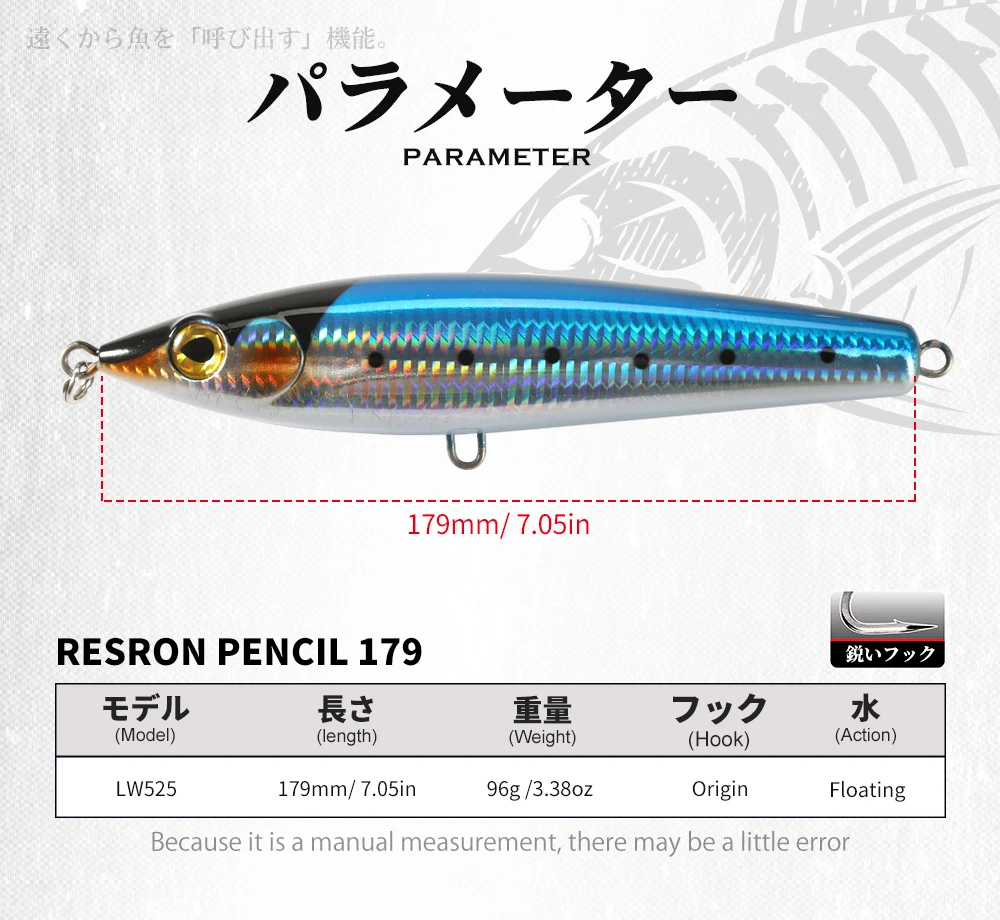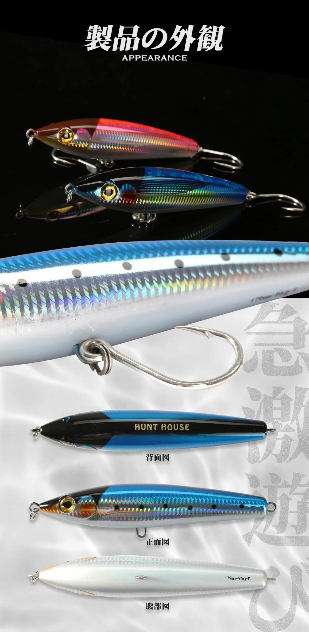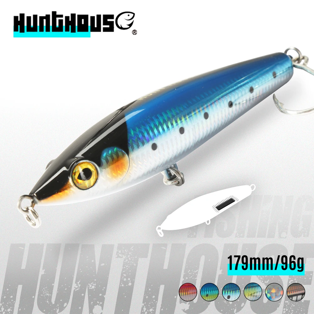Señuelo de pesca con lápiz de 179mm, 96g, flotante, grande, Wobbler, arrastre, Stickbait para GT tuna, cebo falso, señuelos duros, LW525, Hunthouse