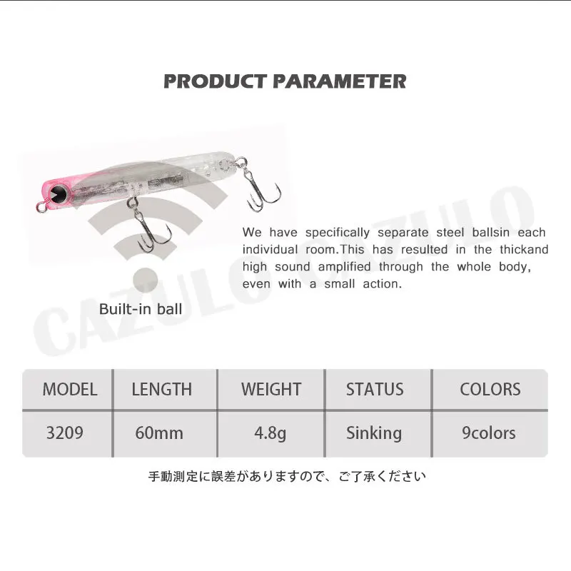 Hundimiento 60mm lápiz señuelo de pesca 4,8g Wobbler caballa Micro agua completa Isca Artificial sábalo bajo señuelos Leurre equipo de pesca