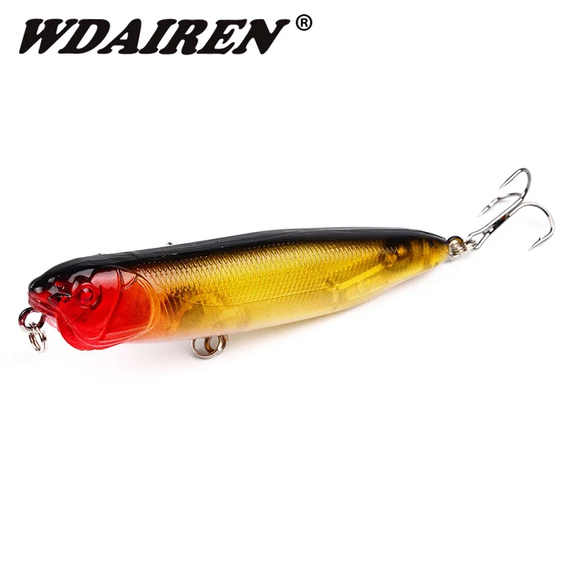 Marca: WDAIRENTipo de señuelo: señuelos PopperLongitud: 90mmPeso: 11,5gProfundidad de buceo: parte superior del aguaOjos: ojos 3DGancho: Ganchos afilados de alta calidadColor: 6 coloresPez Blanco: Lubina, Lucio, pez negro amarillo, pez superior C.Paquete:1 x señuelo de pesca