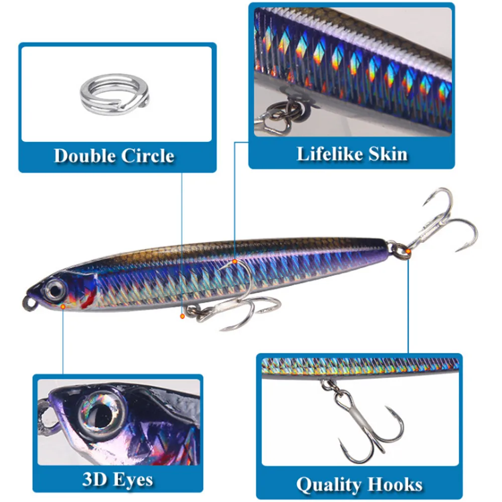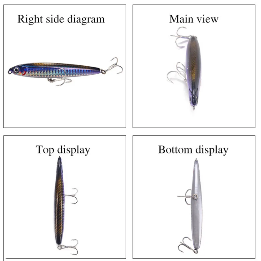 Señuelo de Pesca de lápiz, cebo duro artificial que se hunde, Crankbait, carpa, perca, anzuelos triples, 1 pieza, 8cm, 14g