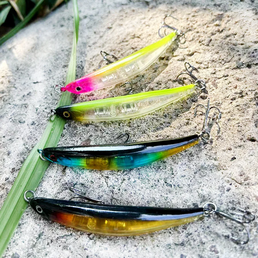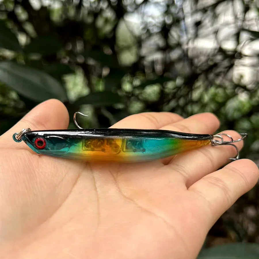Señuelo de pesca de lápiz doblado duro de 4, Wobblers de Lucio de mar de China para curricán, cebos falsos/artificiales, peces para trucha Topwater Marca: BODECIN Longitud: 9cm/3,54 pulgadas Peso: 8,2g/0,29 oz Profundidad de buceo: Topwater Is_personalizado: Sí Tipo: señuelo de pesca teñido con lápiz Material: plástico ABS Ganchos de calidad: 2 ganchos triples fuertes. Anillo: anillo plano fuerte Pez diana: chub pálido, bajo, Pikes, carpa Yellowcheck, perca china, culter Topmouth Lista de embalaje 4 * Señuelos de Pesca