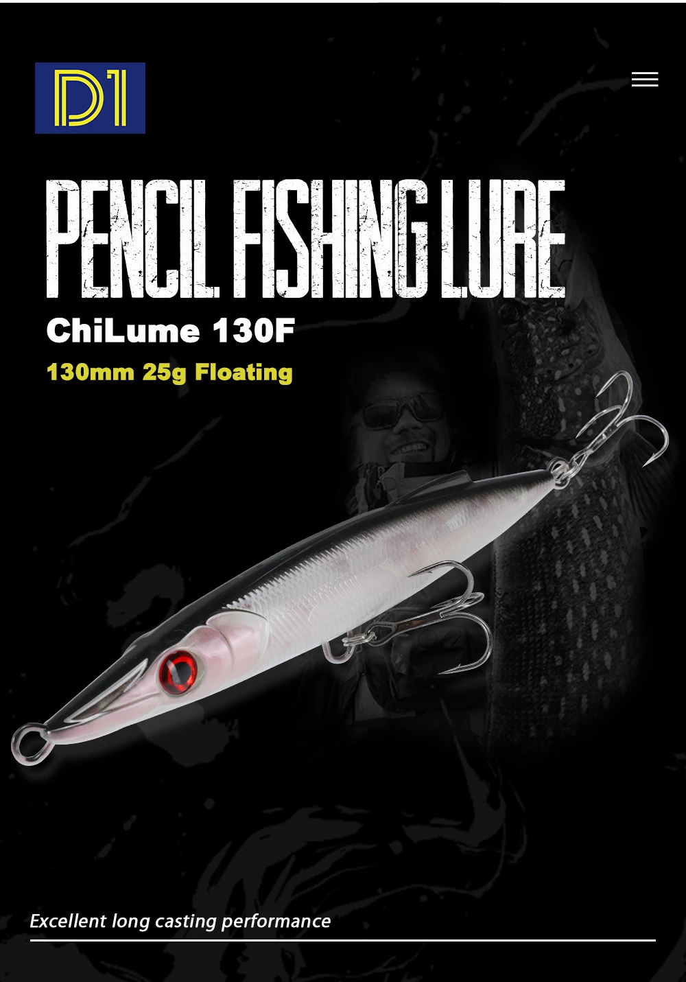 D1 ChiLume 130F Pencil Fishing Lure 130mm 25g Floating Baits WTD Long Casting Wobbler Stickbait Fish Tackle For Bass Pike DT3022
