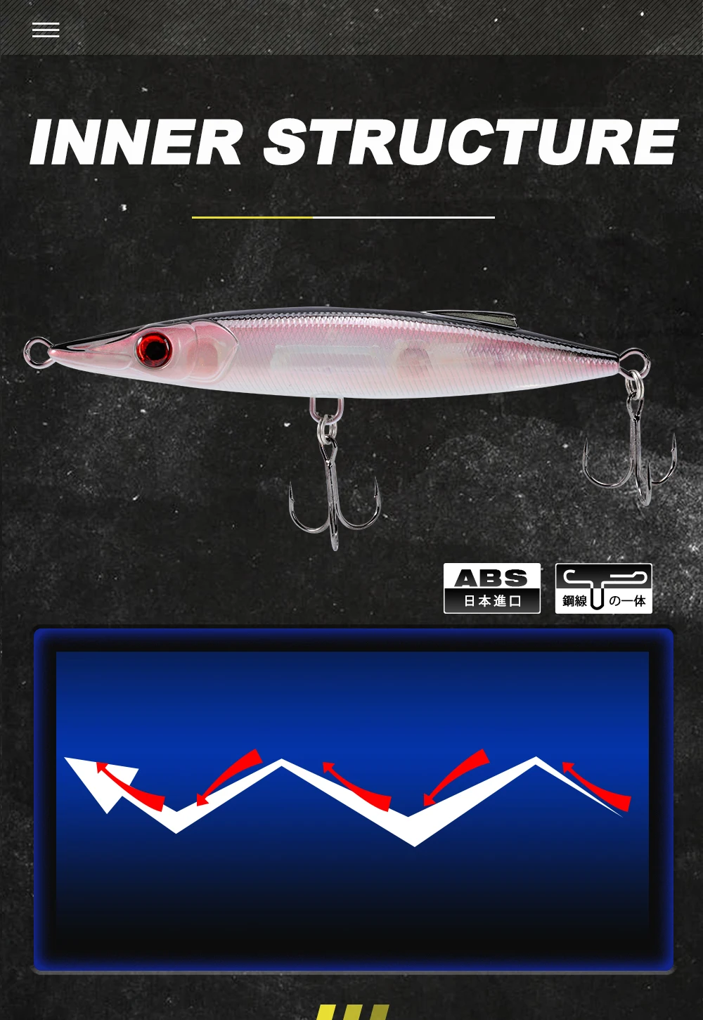 1.It measures 130mm (5.12in) in length and weighs 25g (0.88oz), featuring premium origin hooks. Its inner structure enables a dynamic, erratic action that perfectly mimics an injured baitfish, triggering aggressive strikes from predators.