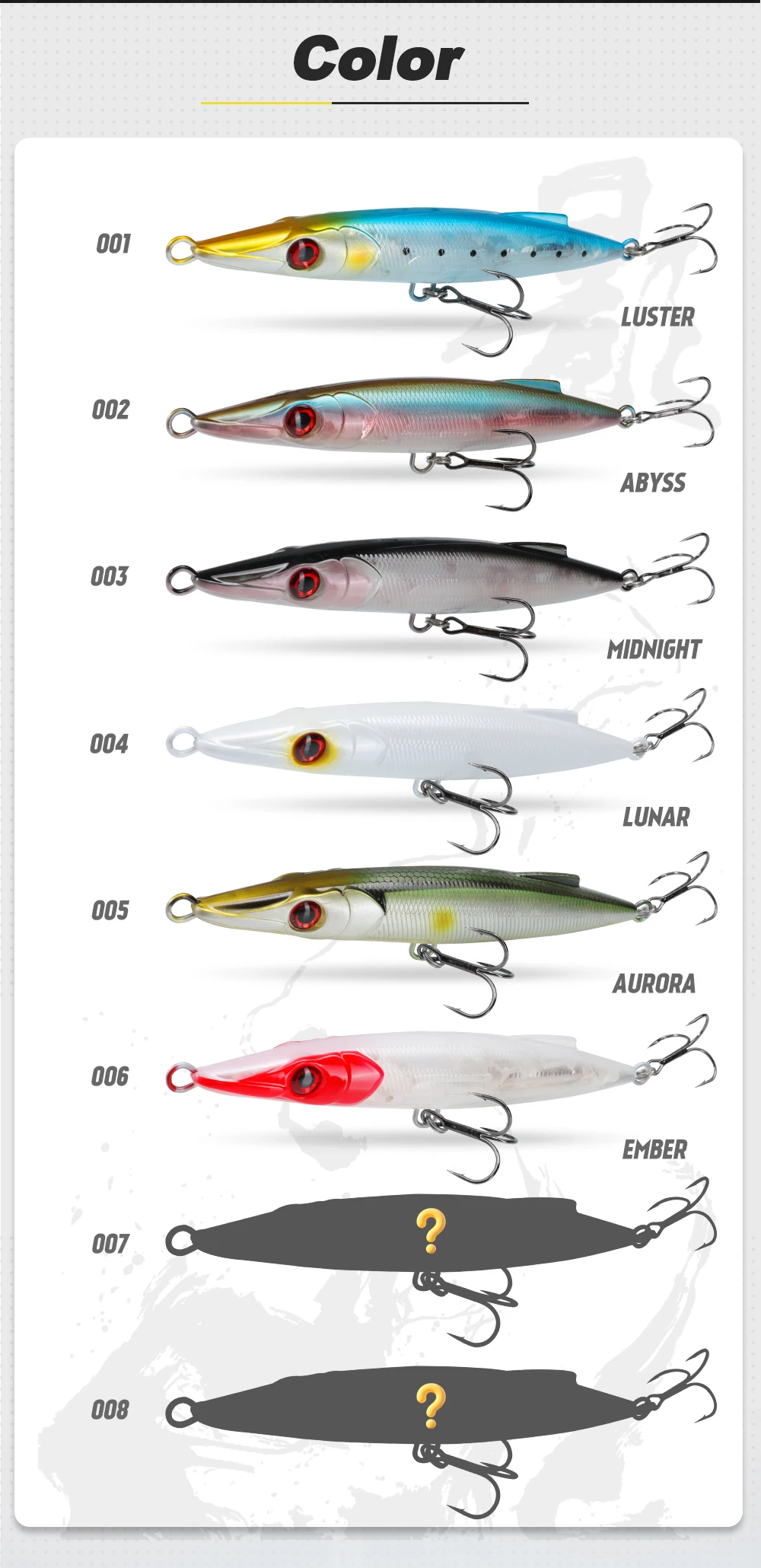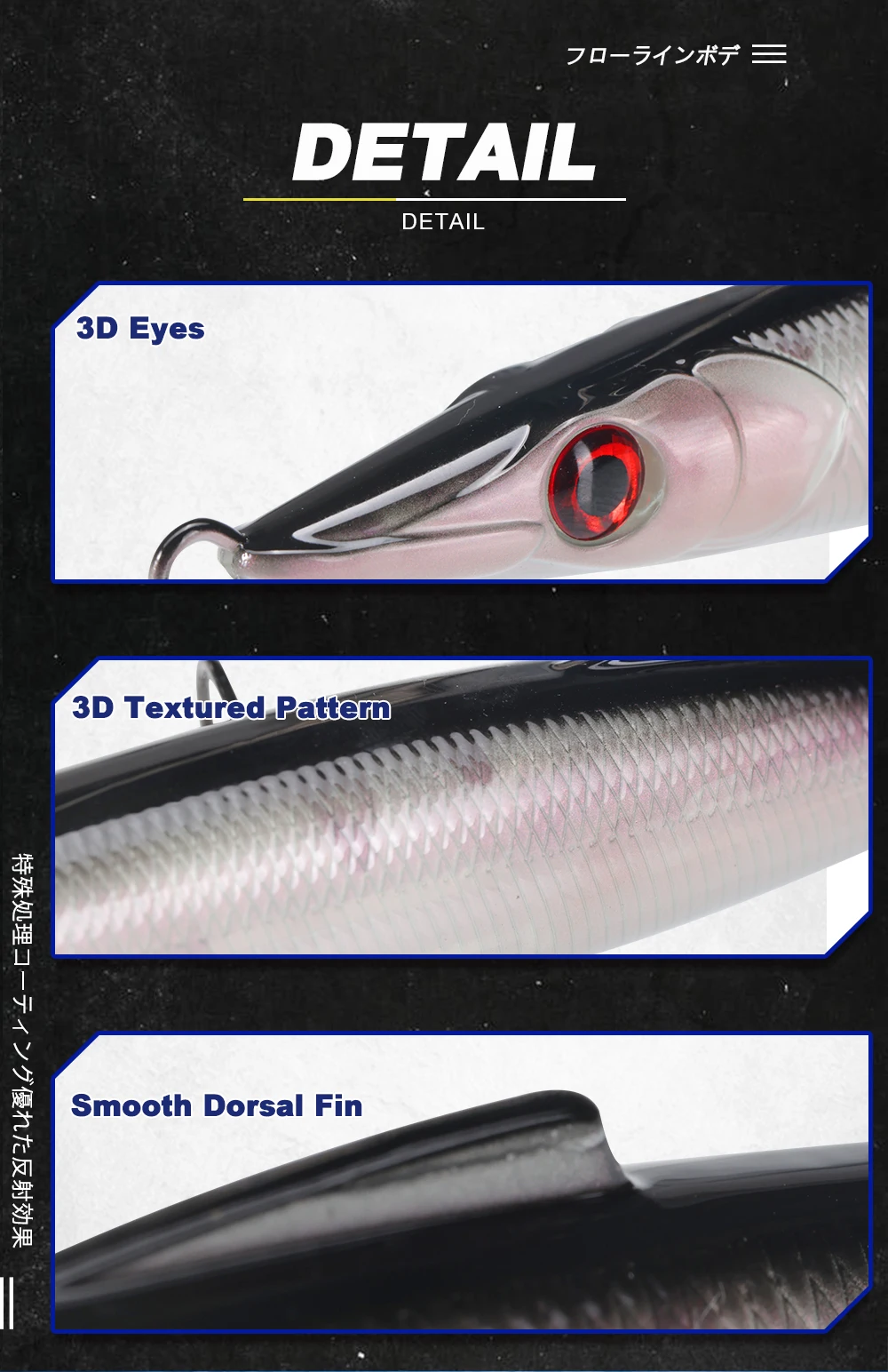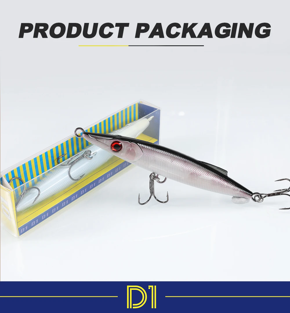 2.Equipped with 3D lifelike eyes and a 3D textured scale pattern, it delivers exceptional visual realism. The smooth dorsal fin reduces water resistance, enhancing casting distance and swim stability. Available in 6 vibrant colors, it suits both freshwater and saltwater fishing for species like bass, pike, and more. With its durable build and lifelike performance, the DT3022 is a must-have for anglers seeking consistent, explosive bites.