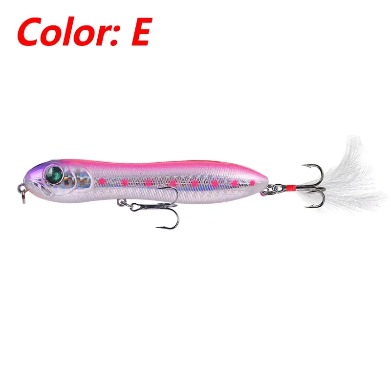 1 Uds. Lápiz flotante señuelo de pesca 10cm 15.5g superior agua Popper Wobbler cebo Artificial de plástico con ganchos de plumas aparejos de pesca