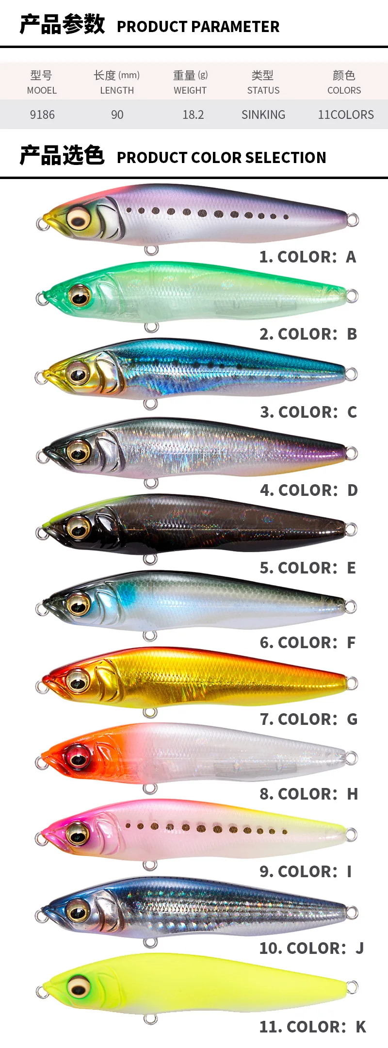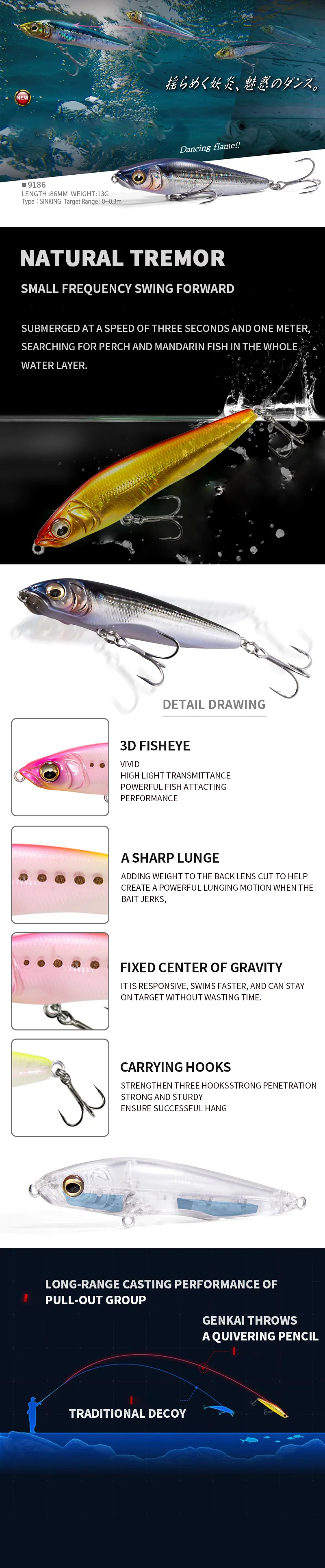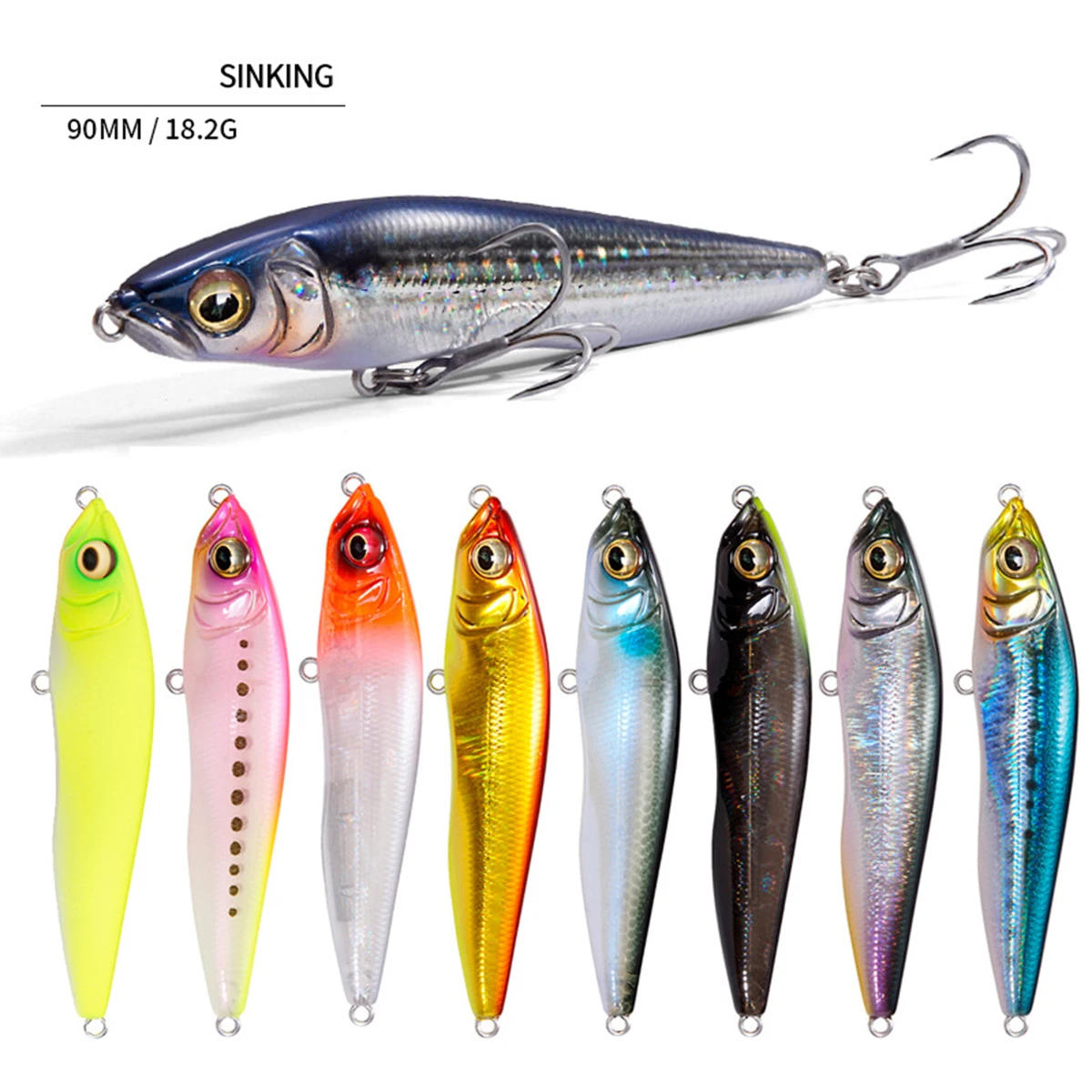 Señuelo de pesca con lápiz de hundimiento de tiro largo, 9cm, 18.2g, Wobbler Artificial Isca para lubina, cebo duro, anzuelos triples, Swimbait Jerkbait