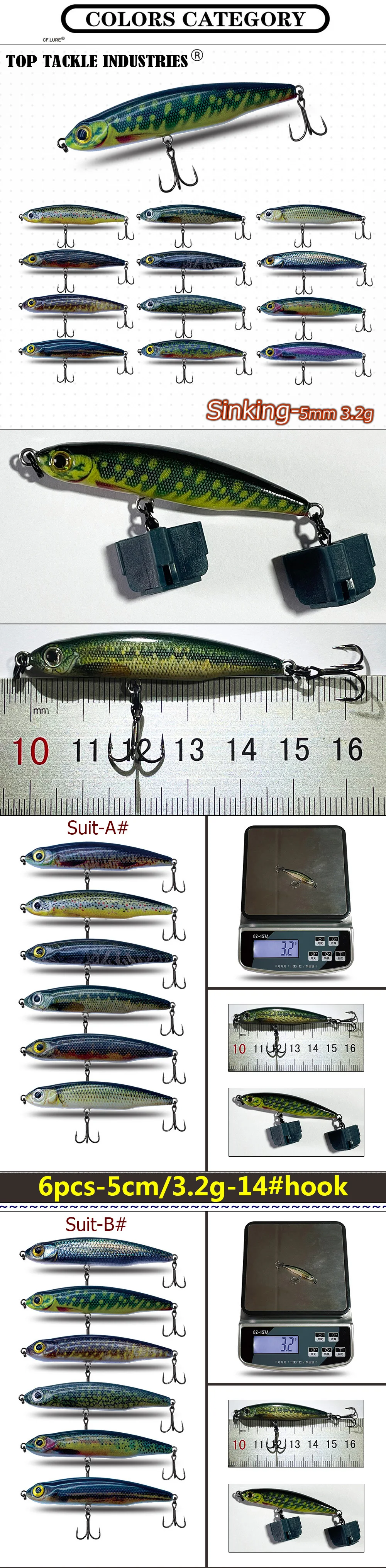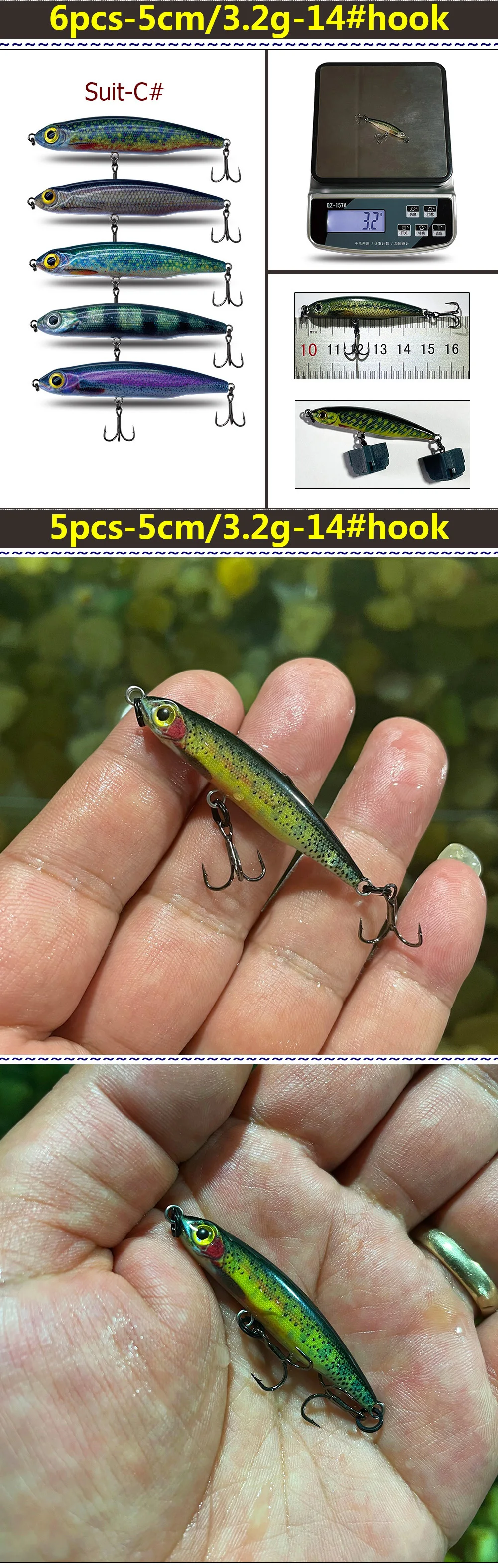 Señuelo de pesca de lápiz hundido, Wobblers, 5cm, 3,5g, Mini cebo duro de Metal Artificial, plantilla, combinación de ojos 3D