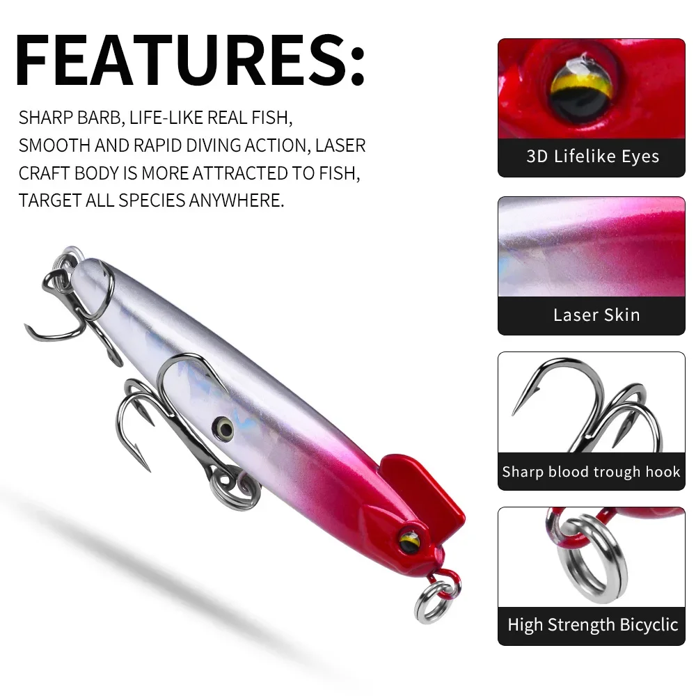 Señuelo de pesca con lápiz de hundimiento lento, 1 unidad, 15g/18g, ruidoso en el agua, agua salada, señuelos de lubina, cebo duro, aparejos de pesca para pececillos
