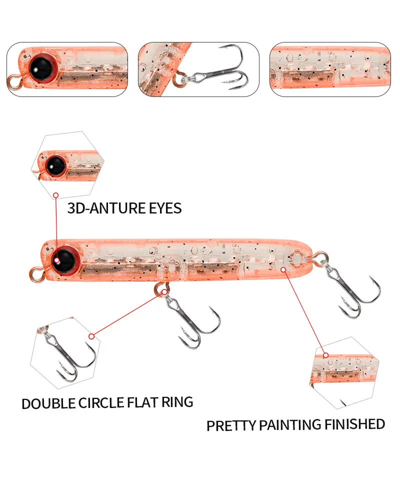 3. Los cebos tienen una pintura realista y ojos 3D vívidos, hacen que el cebo parezca peces reales nadando en el agua durante la pesca.
