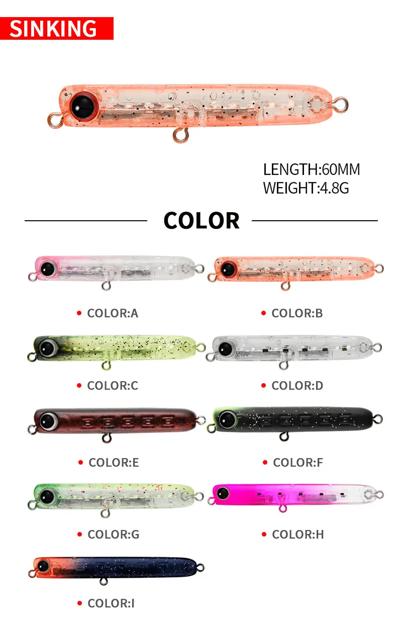 1 Uds 60mm 4,8g aparejos de pesca hundidos lápiz señuelo hundimiento Peche Pesca Isca cebo Artificial Wobbler lápiz de pesca cebo duro 9023