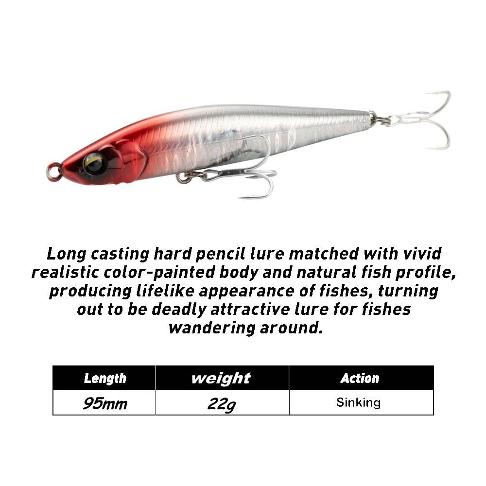 Señuelo de pesca con lápiz de Jerk hundido 95mm 22G Wobbler Bass Fish Tackle Señuelos Accesorios de pesca Señuelos de agua salada Trolling Fish Bait