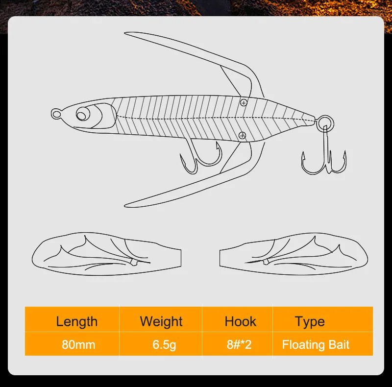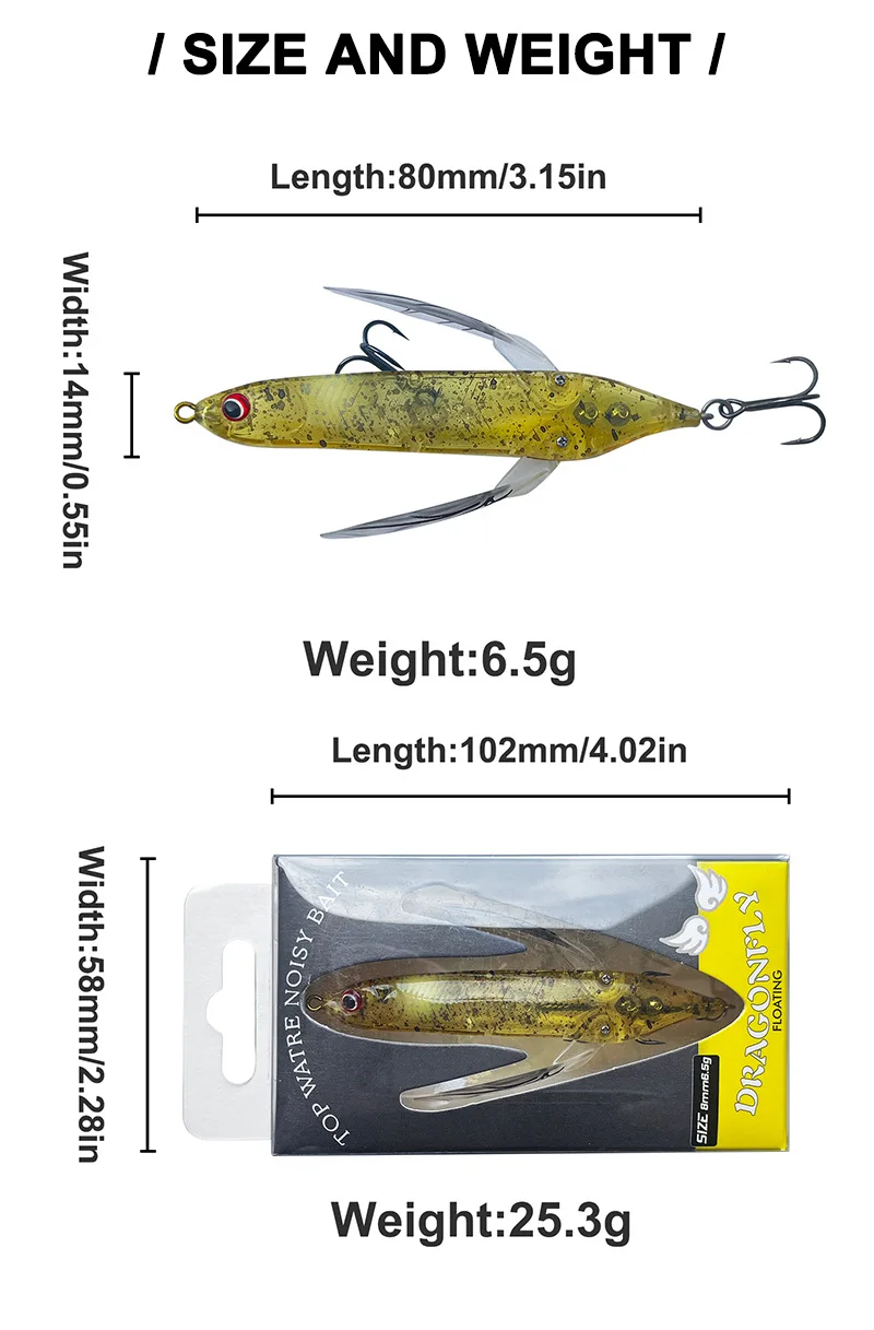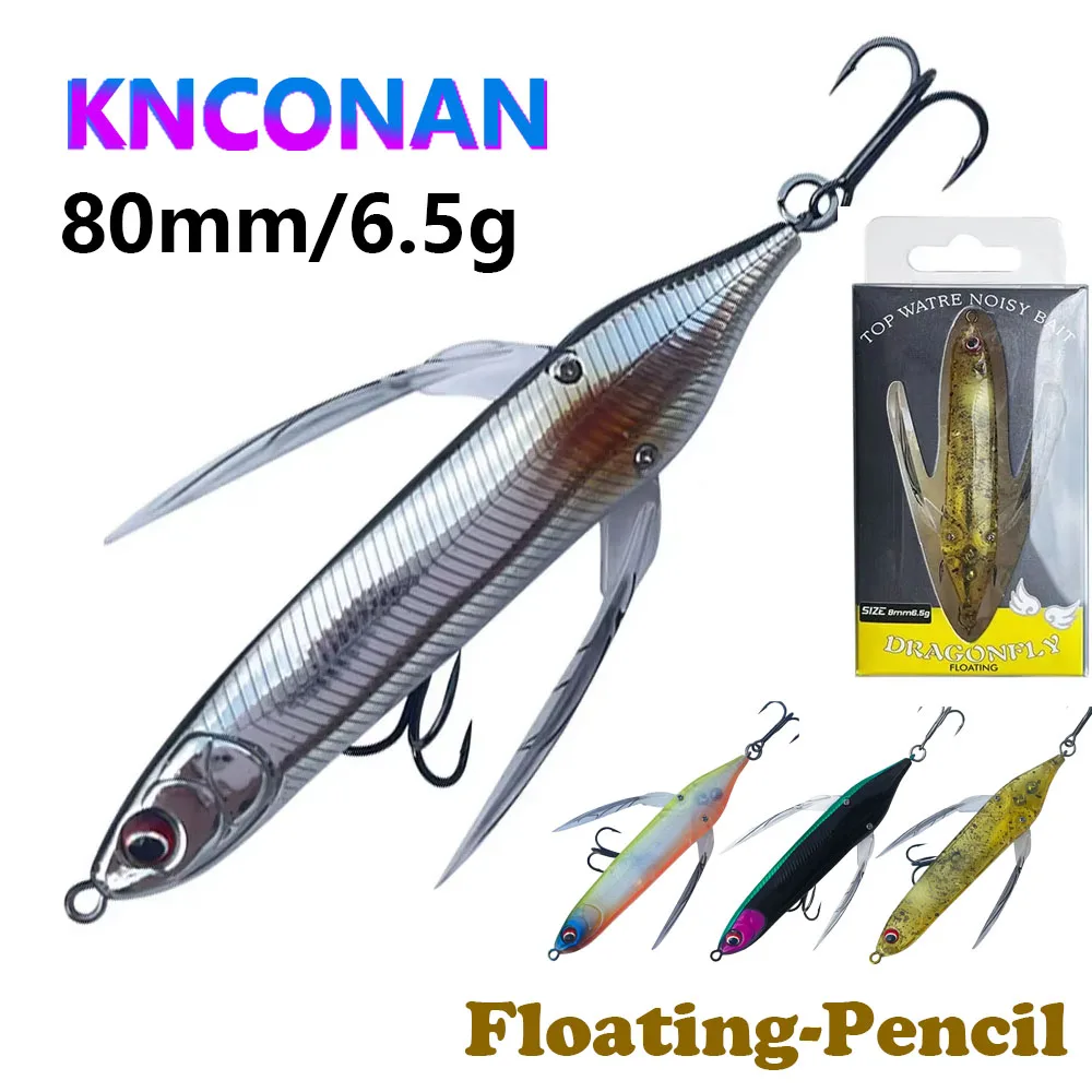 Señuelo de pesca con lápiz sobre orugas de libélula Topwater, 80mm, 6,5g, cebo duro flotante superficial para aparejos de pesca lubina, 1 ud.