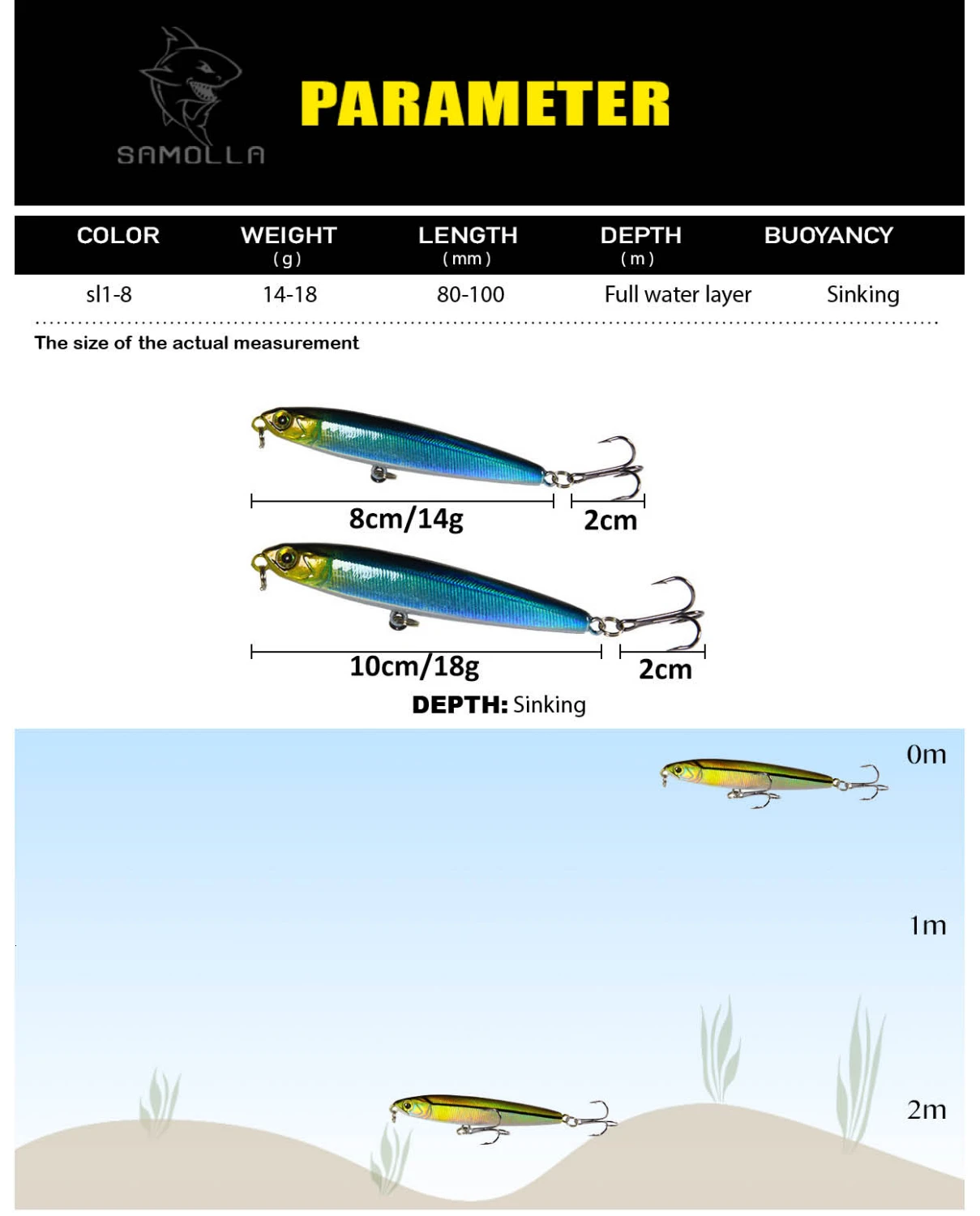Señuelo de pesca con lápiz, pesas de 14-18g de largo alcance Isca, lápiz de hundimiento Artificial, cebo duro para moscas, Señuelos de Pesca 2019, cebo para peces
