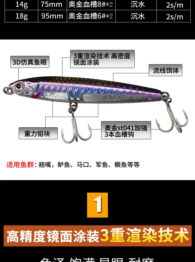 Señuelo de pesca de lápiz que se hunde, peso de 10g, 14g, 18g, 24g, aparejos de pesca, accesorios de pesca, Señuelos de agua salada, señuelo de cebo de pescado