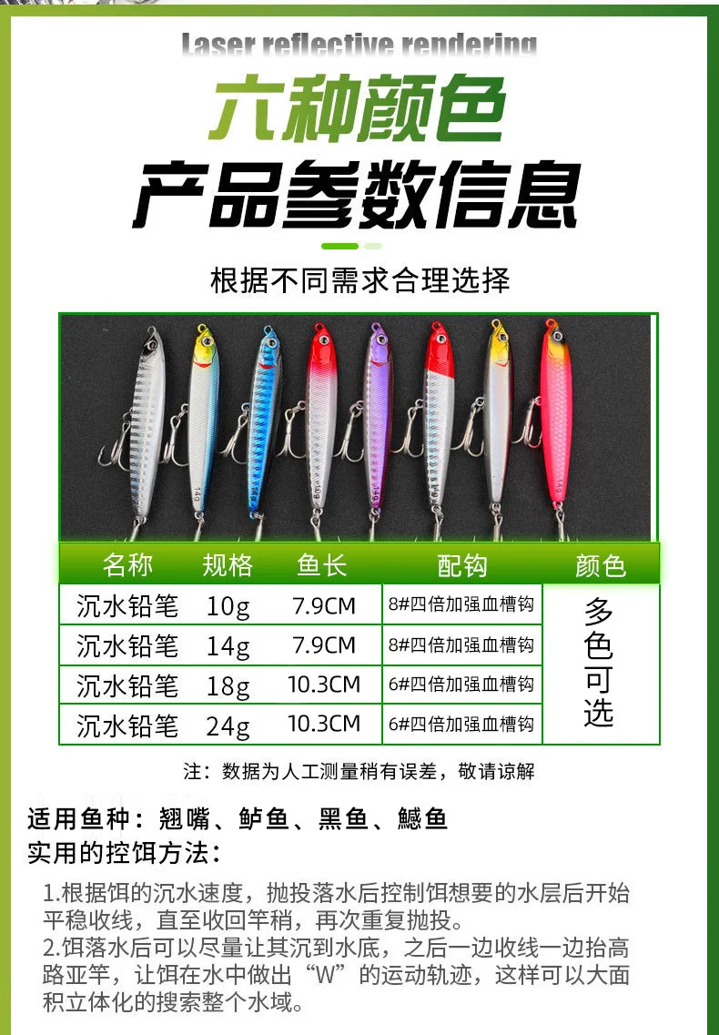 Señuelo de pesca de lápiz que se hunde, peso de 10g, 14g, 18g, 24g, aparejos de pesca, accesorios de pesca, Señuelos de agua salada, señuelo de cebo de pescado