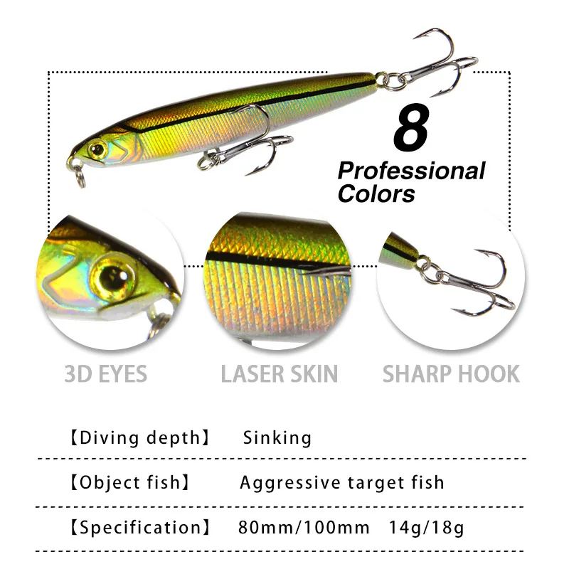 Señuelo de pesca de lápiz que se hunde, peso de 14/18g, aparejos de pesca de lubina, accesorios de pesca, señuelos de agua salada, cebo de arrastre