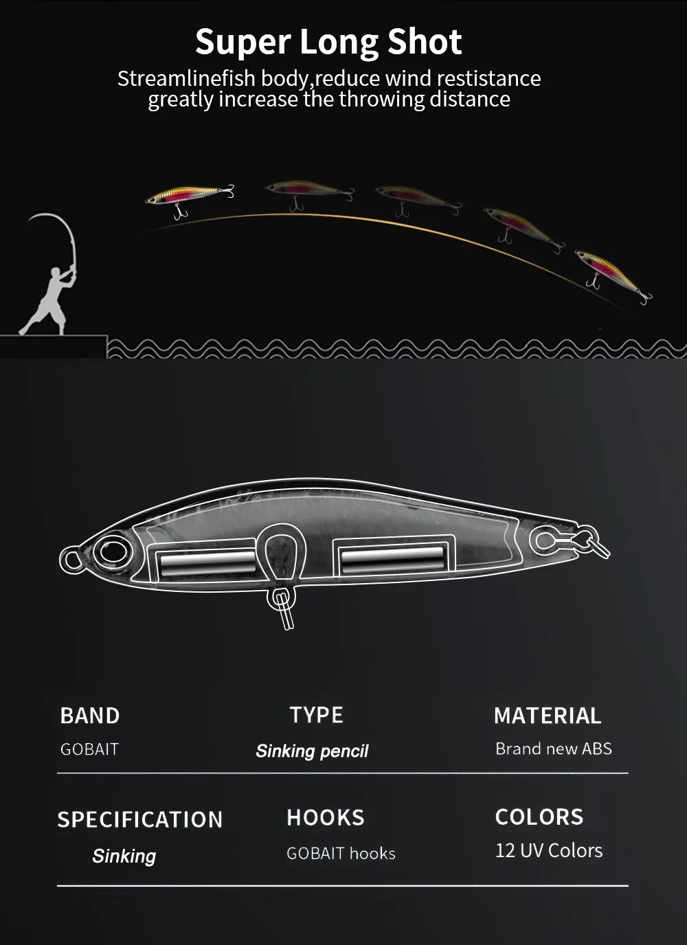• Material de alta calidad:Hecho a mano en China continental, GOBAIT hundimiento lápiz cebo está hecho de materiales superiores asegurando durabilidad y longevidad.
