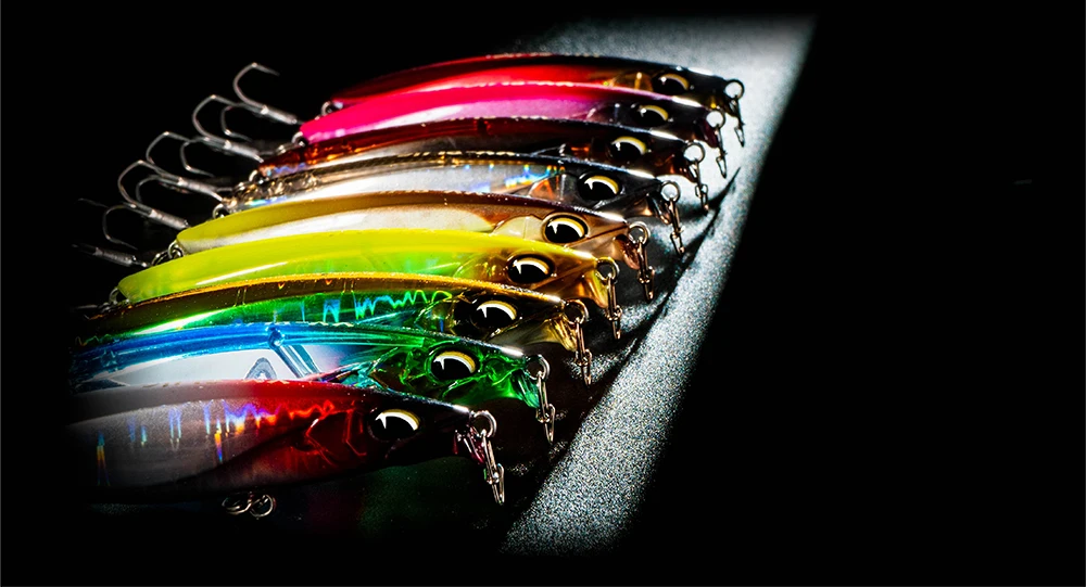 (2).El señuelo está integrado con una placa láser de espejo de alto brillo, lo que hace que el cebo sea más visible en el agua. Incluso en aguas turbulentas puede atraer a los peces para que ataquen.
