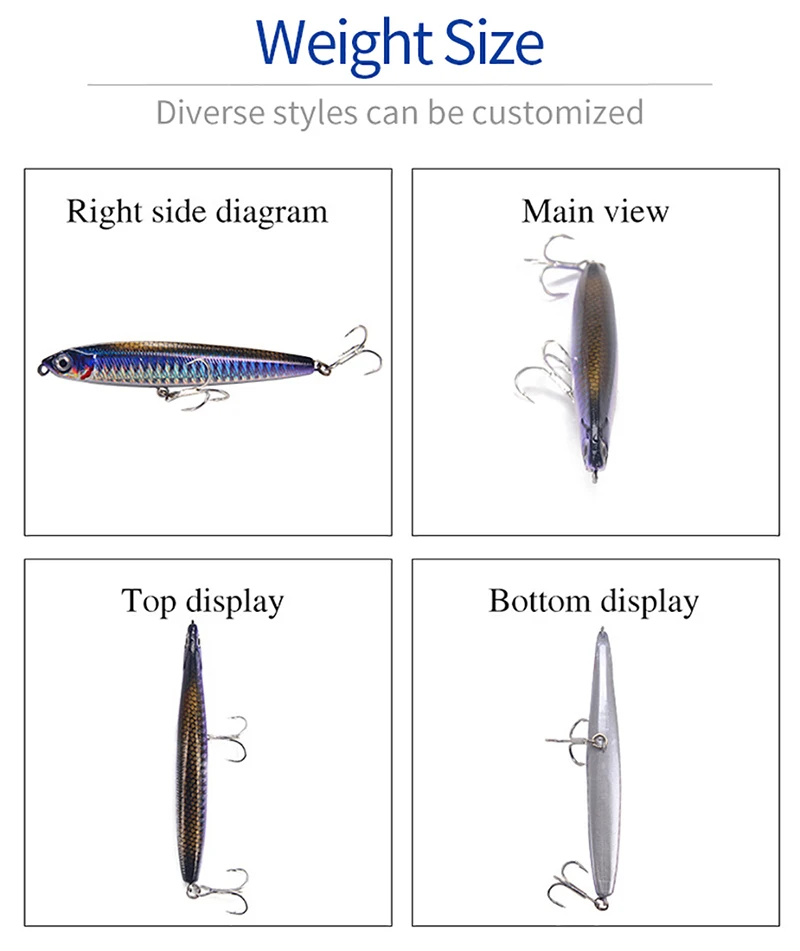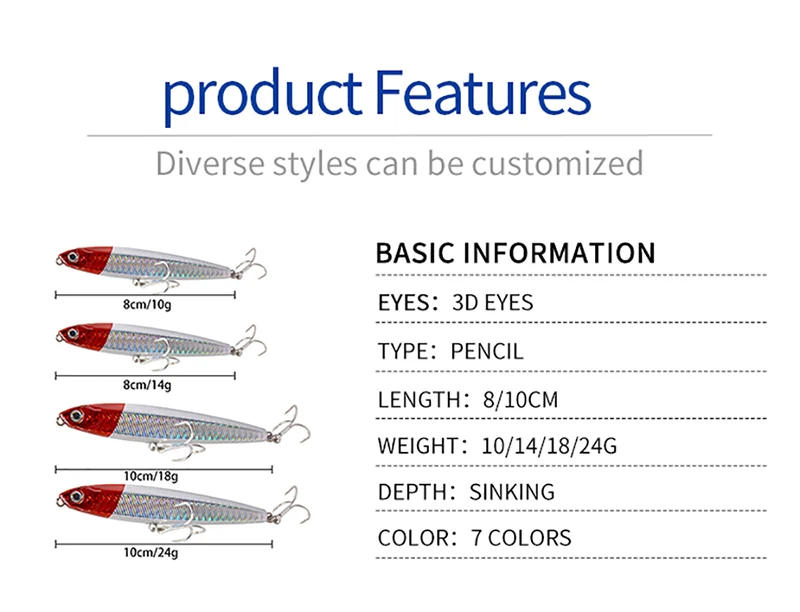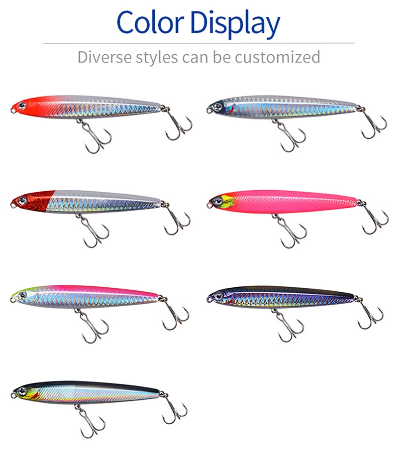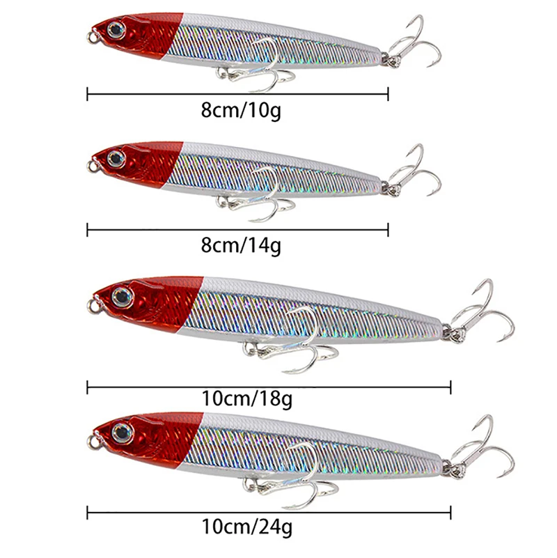 Señuelo de pesca con lápiz Topwater, 80/100mm, 10/14/18/24g, cebos flotantes para lubina, cebo duro Artificial, aparejos de Pesca