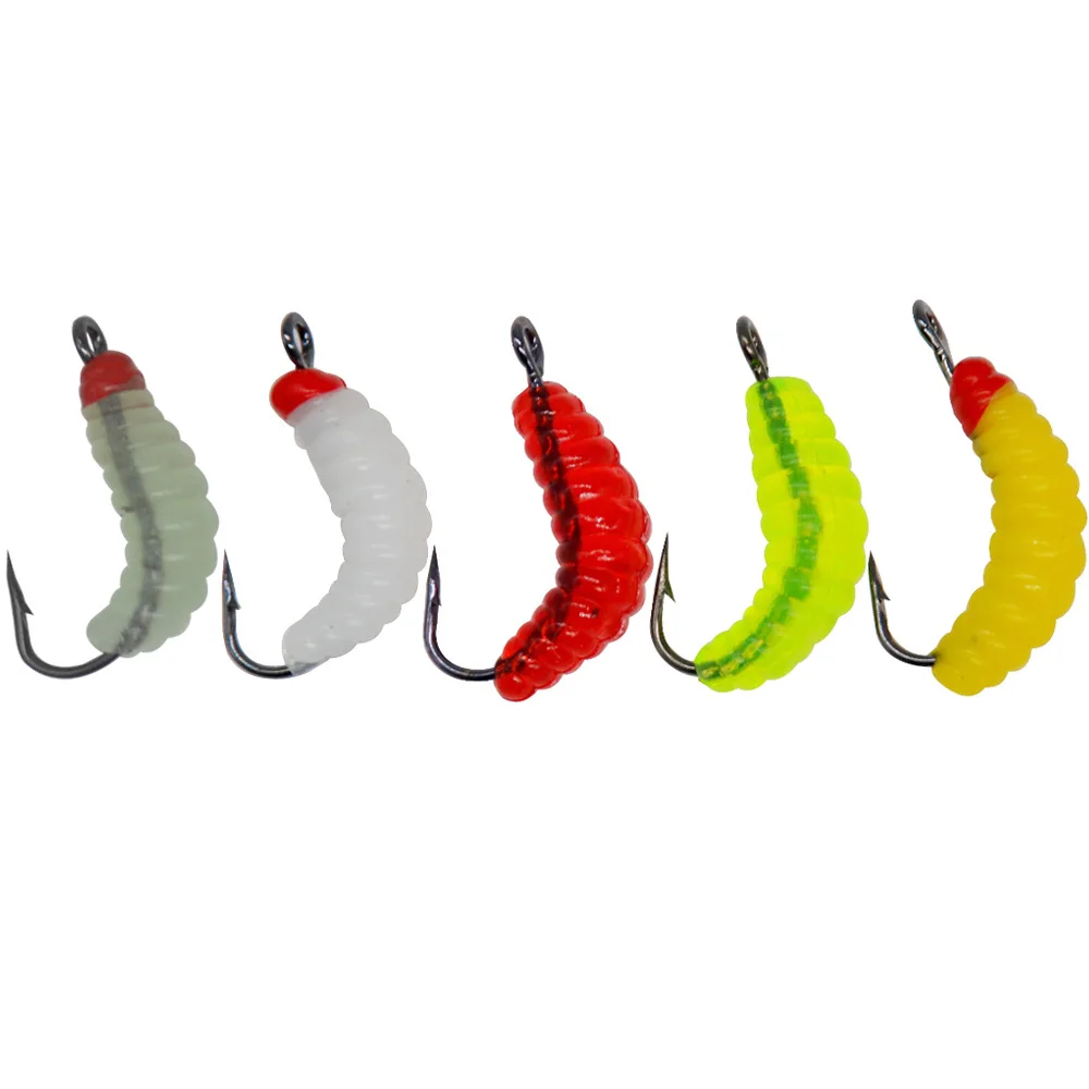 Señuelo de pesca larva, gusano de pan con anzuelo, cabeza de inmersión, señuelos artificiales, 2,2 cm, 0,55g, cebo blando, lote de 10 piezas en oferta