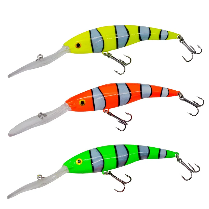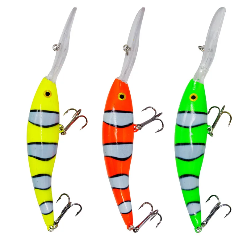 Señuelo de pesca de lengua larga, tablero de buceo Minnow Zibra, raya 14g, 13,5 cm, señuelos artificiales de plástico, Lote de 3 piezas, venta