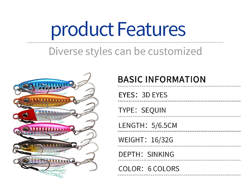 Señuelo de pesca de lentejuelas, cebo giratorio wobbler de mar, artificial, 16 g/32 g, 50 mm/65 mm