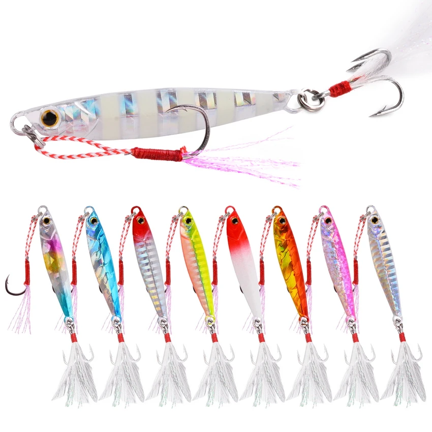 Señuelo de pesca de lubina, accesorio Artificial de Metal fundido con láser, cuchara de fundición, 7g, 10g, 14g, 17g, 21g, 28g, 1 unidad