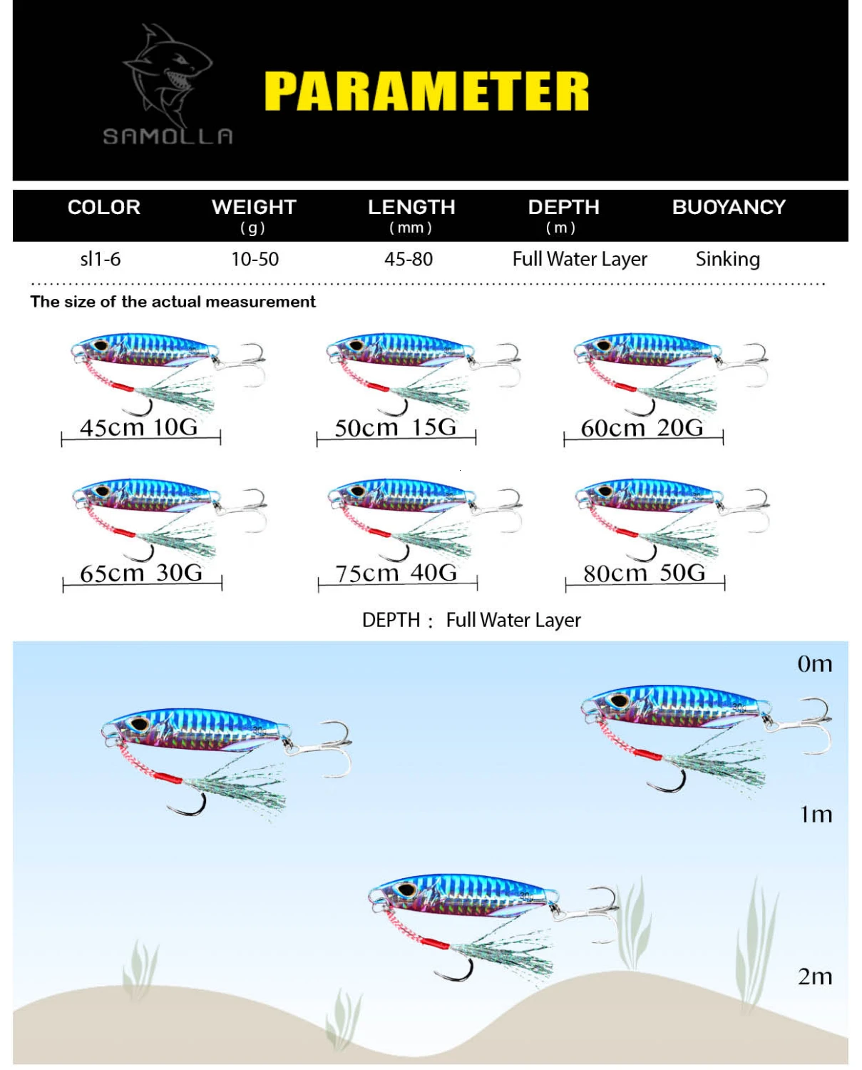 6. Bolas de metal: Bolas de acero inoxidable en el interior, para mantener el equilibrio del señuelo de pesca, para la mayor distancia de lanzamiento.