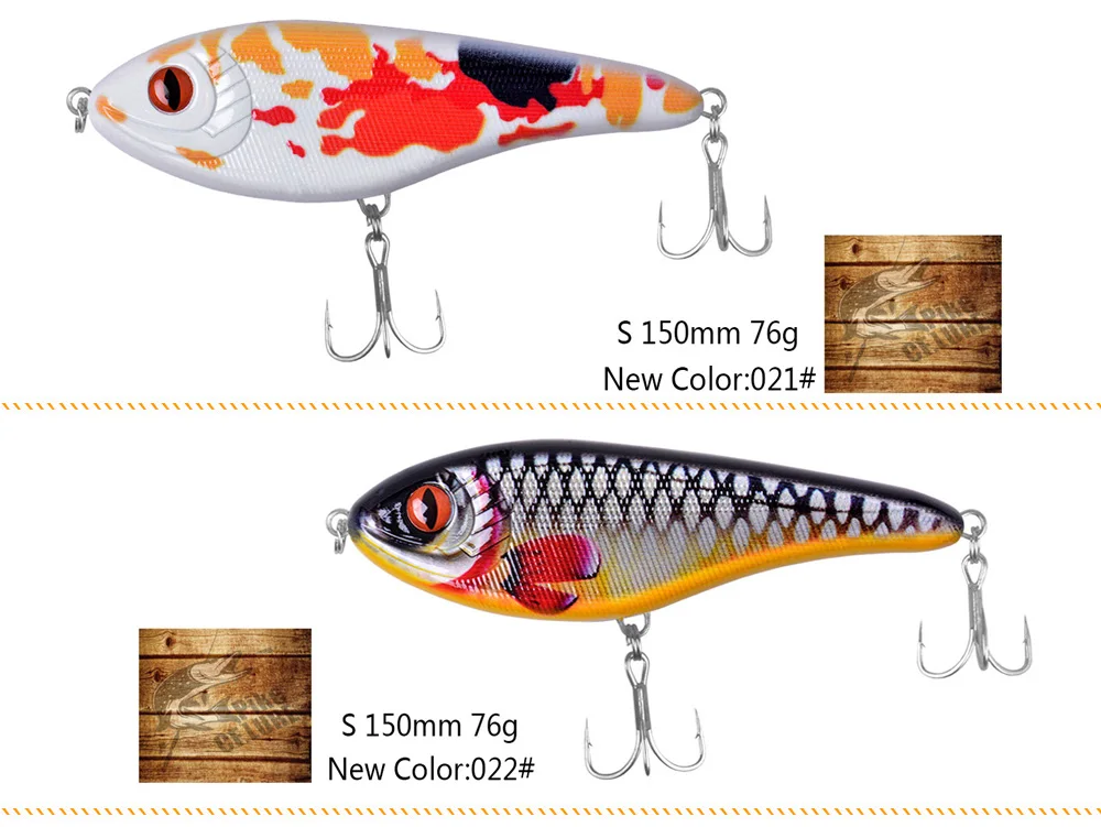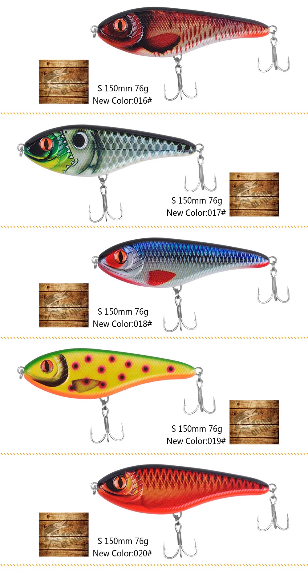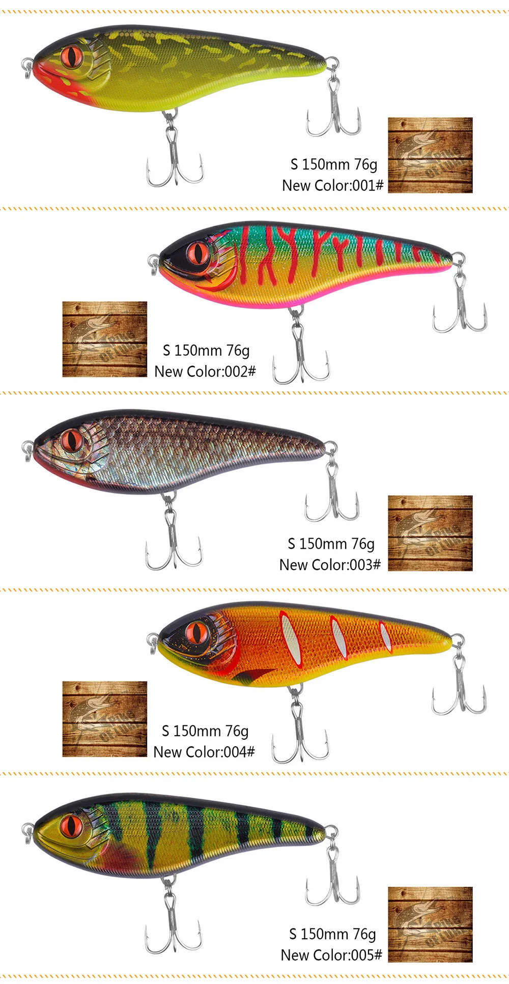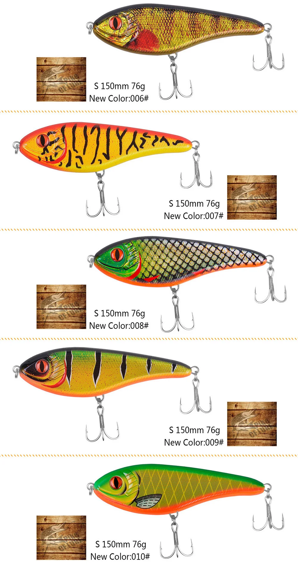 Todo está bien, pero hay algo de qué quejarse. El señuelo de pescar original pesa 76 gramos y se hunde lentamente. Esta copia es notoriamente más pesada. Especialmente en color natural. Porque está cubierto con una película de aluminio. La diferencia es visible en las balanzas. Y esto a pesar de que cambié los anillos de enrollo por unos más pequeños. Y el de la nariz fue eliminado completamente. Si haces los ganchos más ligeros, el verde se puede ajustar para coincidir con el original. Y el natural no lo es. Recomiendo color natural, como en la foto. Está sin papel de aluminio. El peso será el mismo que el verde. Estoy escribiendo para aquellos que valoran la velocidad de inmersión del cebo.