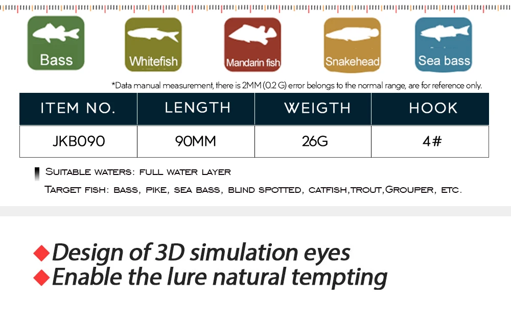 1) Bien diseñado y bien hecho: La vida 3D como ojos de pez con cuerpo impreso que atrae peces proporciona una excelente apariencia de Señuelos de Pesca.