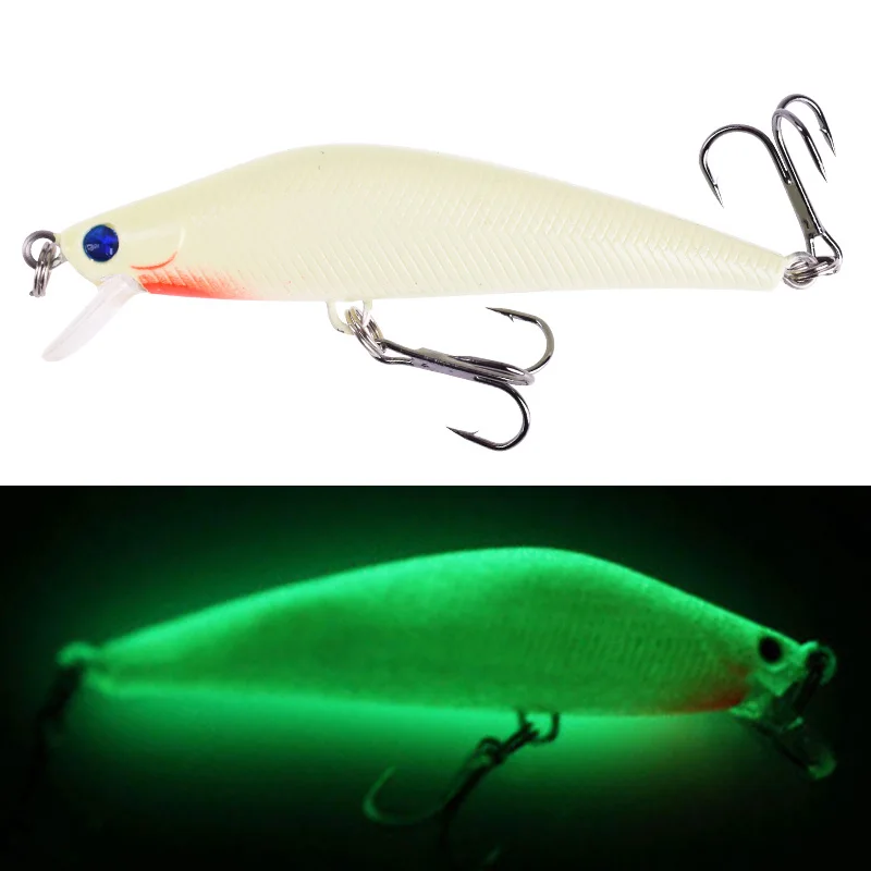 Cebos de pesca nocturnos luminosos 3D, 8cm, 8g, señuelos pececillos de lubina con anzuelos triples, cebos duros artificiales, aparejos de Pesca para Lucio y carpa, 1 Uds.