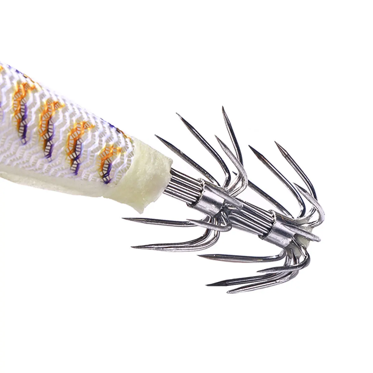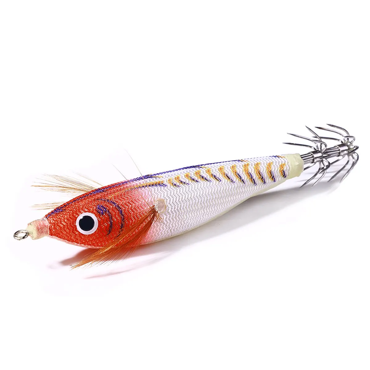 Señuelo de pesca luminoso, señuelos de madera para camarones, anzuelo de calamar, pulpo, sepia, camarones, Jigging, cebo para pesca nocturna, 5 uds.