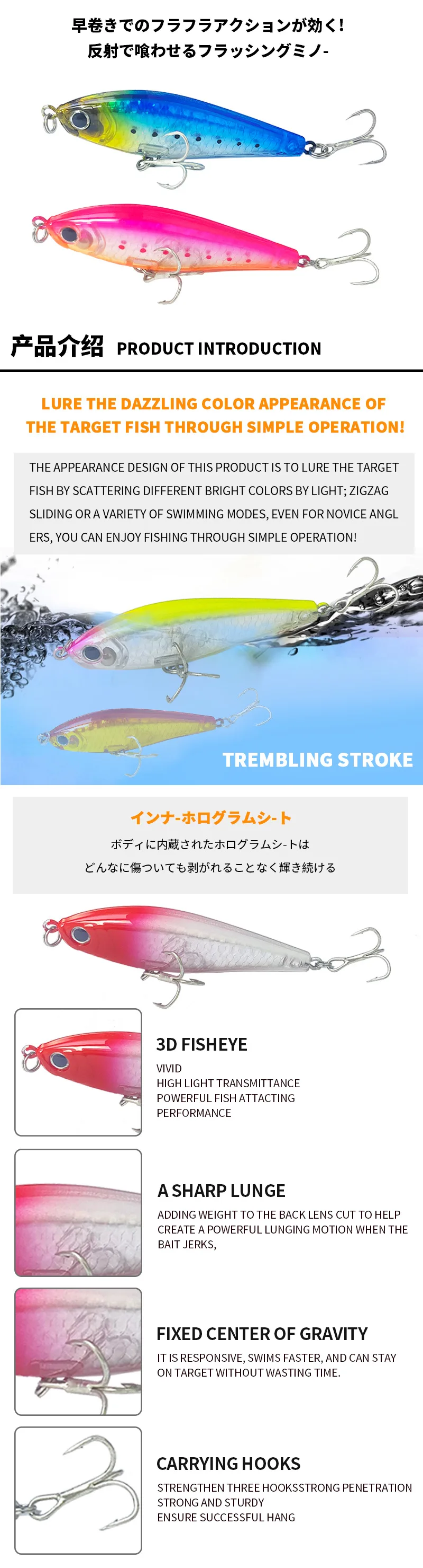 Señuelo de pesca Luya, lápiz sumergido de tiro largo, 70MM/8,1G, cebo falso de capa completa, boca doblada