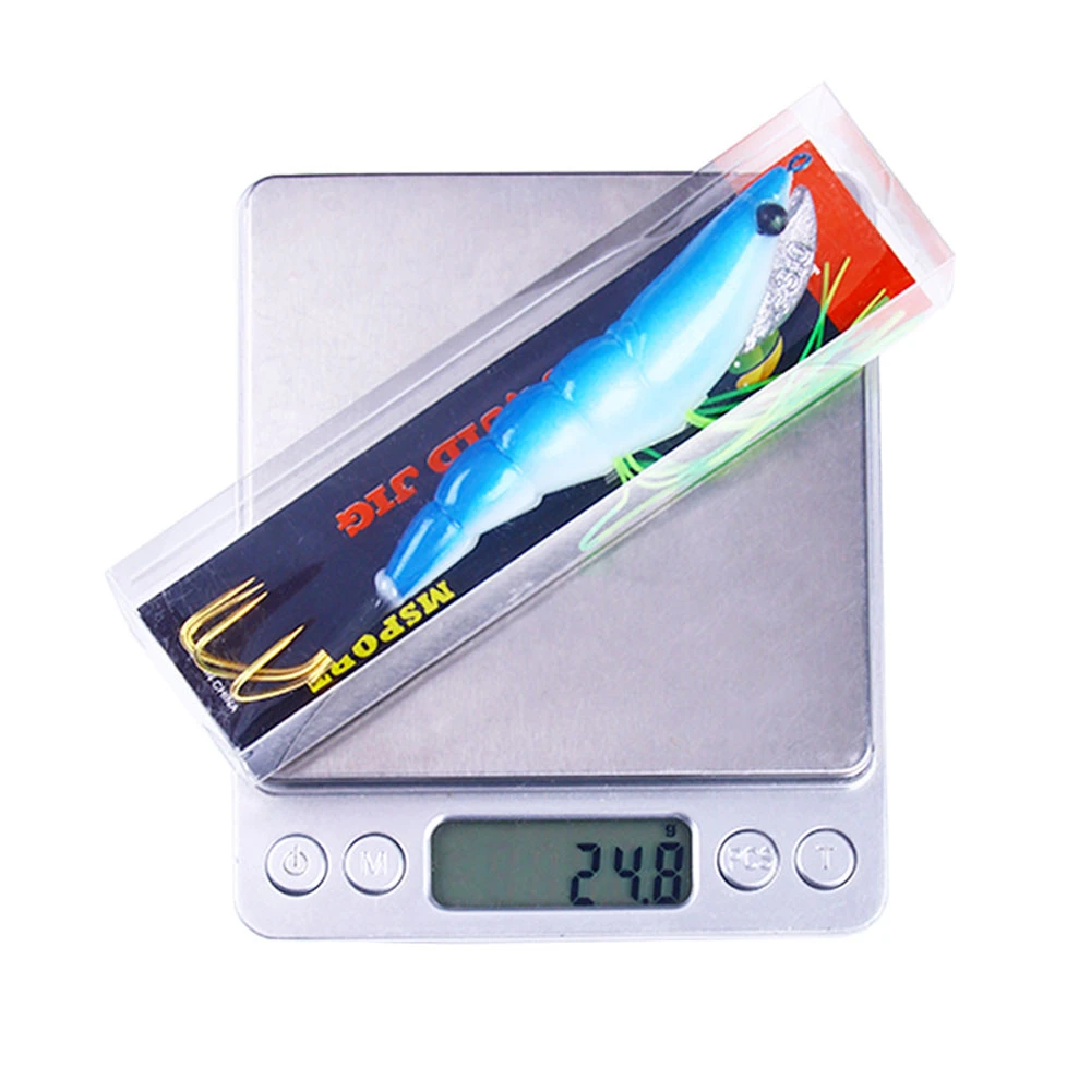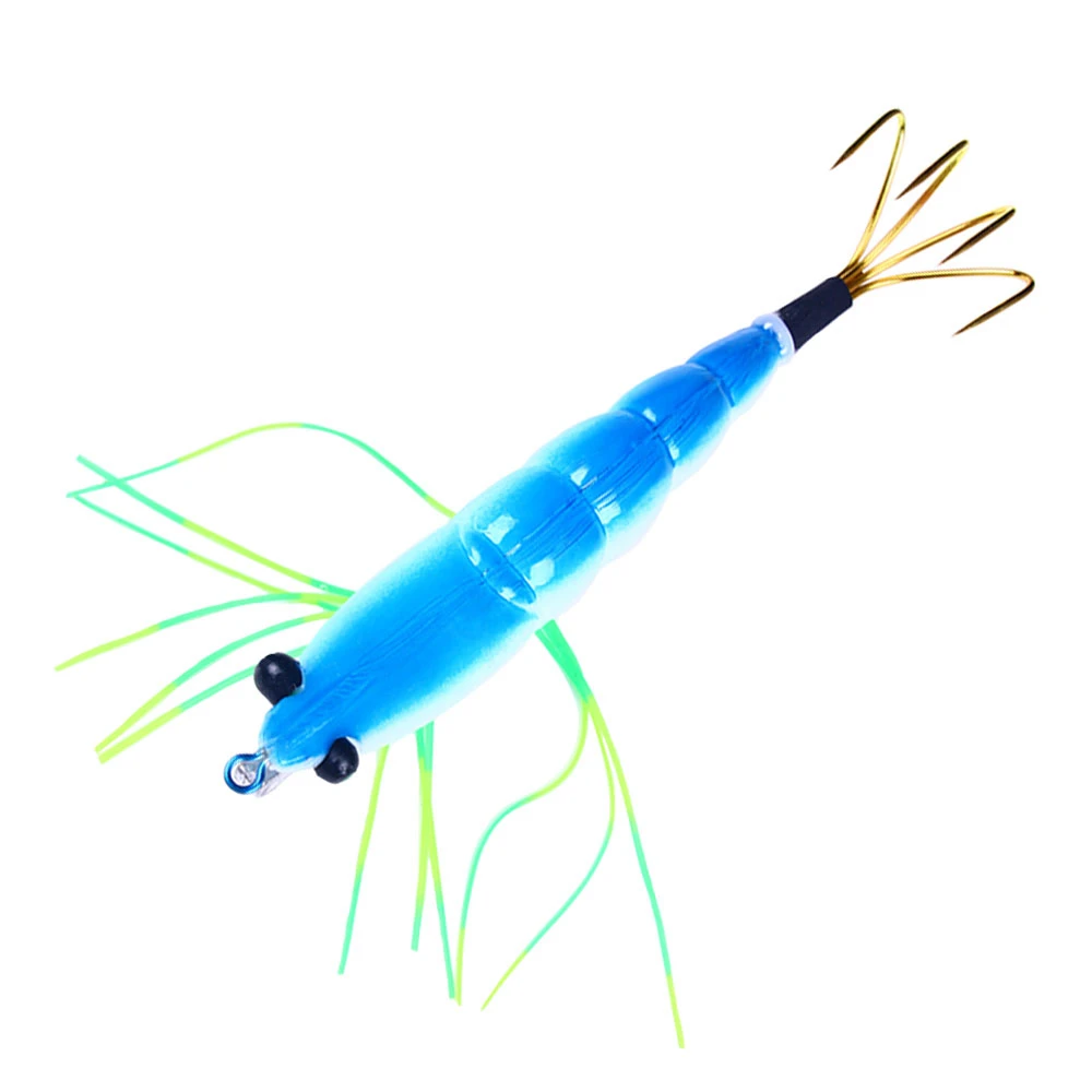 1 Uds señuelo de pesca camarón de madera 12CM 17,2G ojos 3D anzuelo de calamar tiro largo cebos artificiales para camarones para calamar atrapados