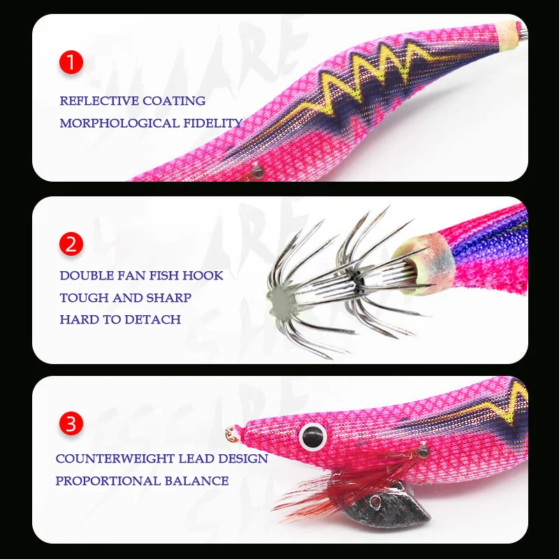 • Diseño realista de camarones y sepia:El diseño realista de camarones y sepias hace que estos señuelos irresistibles para los peces, aumentando significativamente sus posibilidades de una captura exitosa.