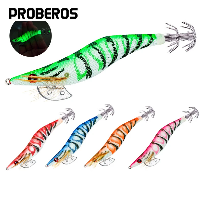 Señuelo de pesca de madera de primera calidad, anzuelo de calamar, 8/10/12cm, camarones realistas, Egi, sepia, cebo duro para agua salada y agua dulce