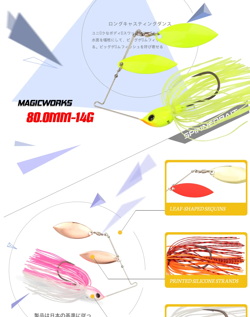 Magic Works-señuelo de pesca de 1/2oz, suministros de cuchillas para cebo giratorio, nuevos señuelos giratorios, falda de silicona, accesorios para cebo Artificial, Pesca