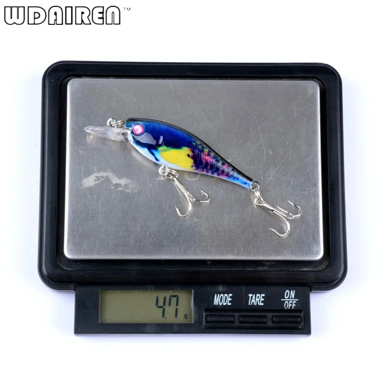 Marca: WDAIRENTipo de Cebo: cebo de manivelaLongitud: 65mmPeso: 4,5GColor: 4 colores diferentesProfundidad de buceo: 0,2-0,5 MGancho: 2 ganchos agudos afilados.Material: plástico de impresión 3DLista de embalaje1 * señuelo de pesca