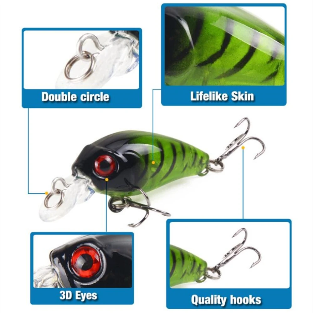 Señuelo de Pesca con manivela, cebo duro Artificial, 4,5 cm, 3,5g, Crankbait flotante, lubina, Wobbler loco, aparejos de Pesca de Lucio, 1 ud.