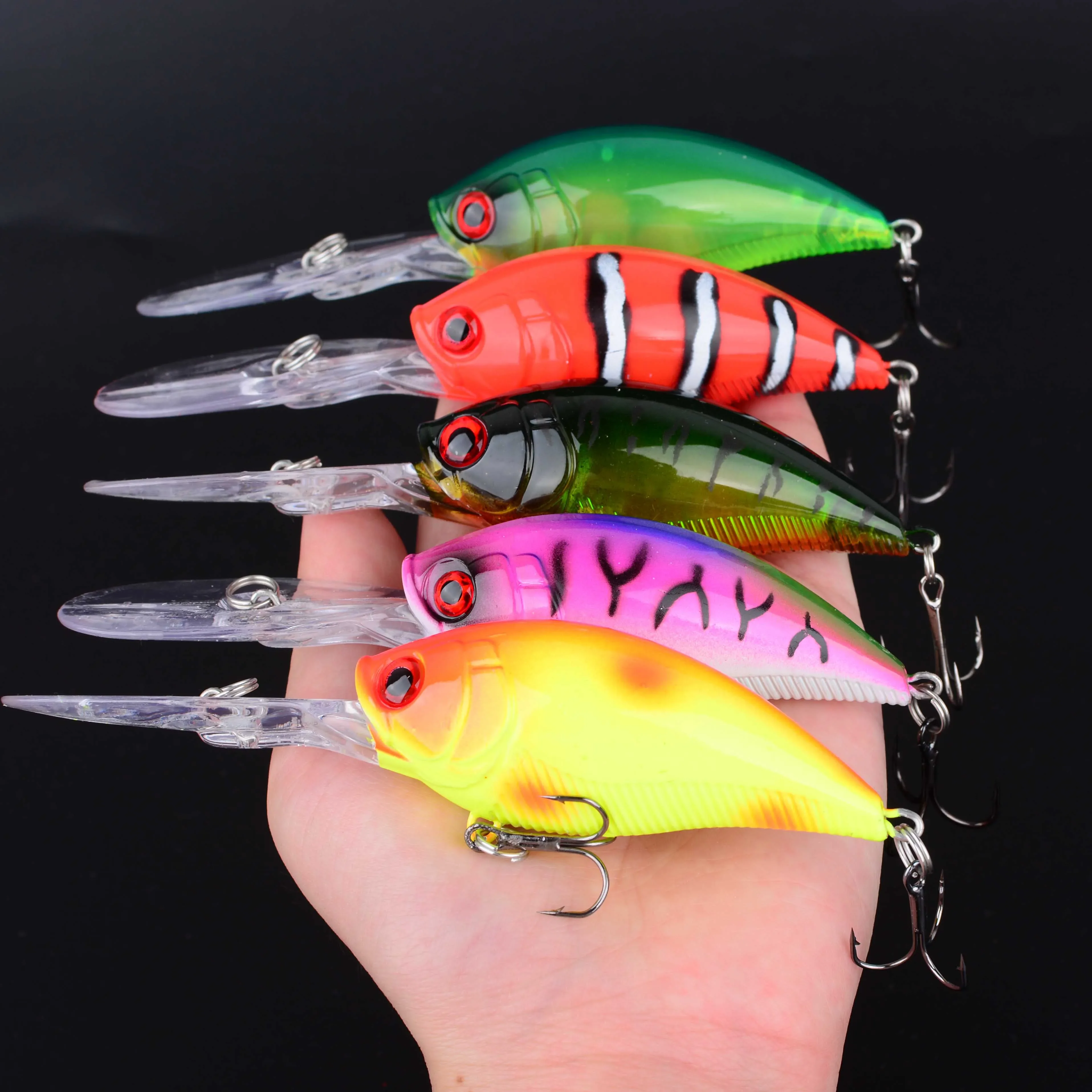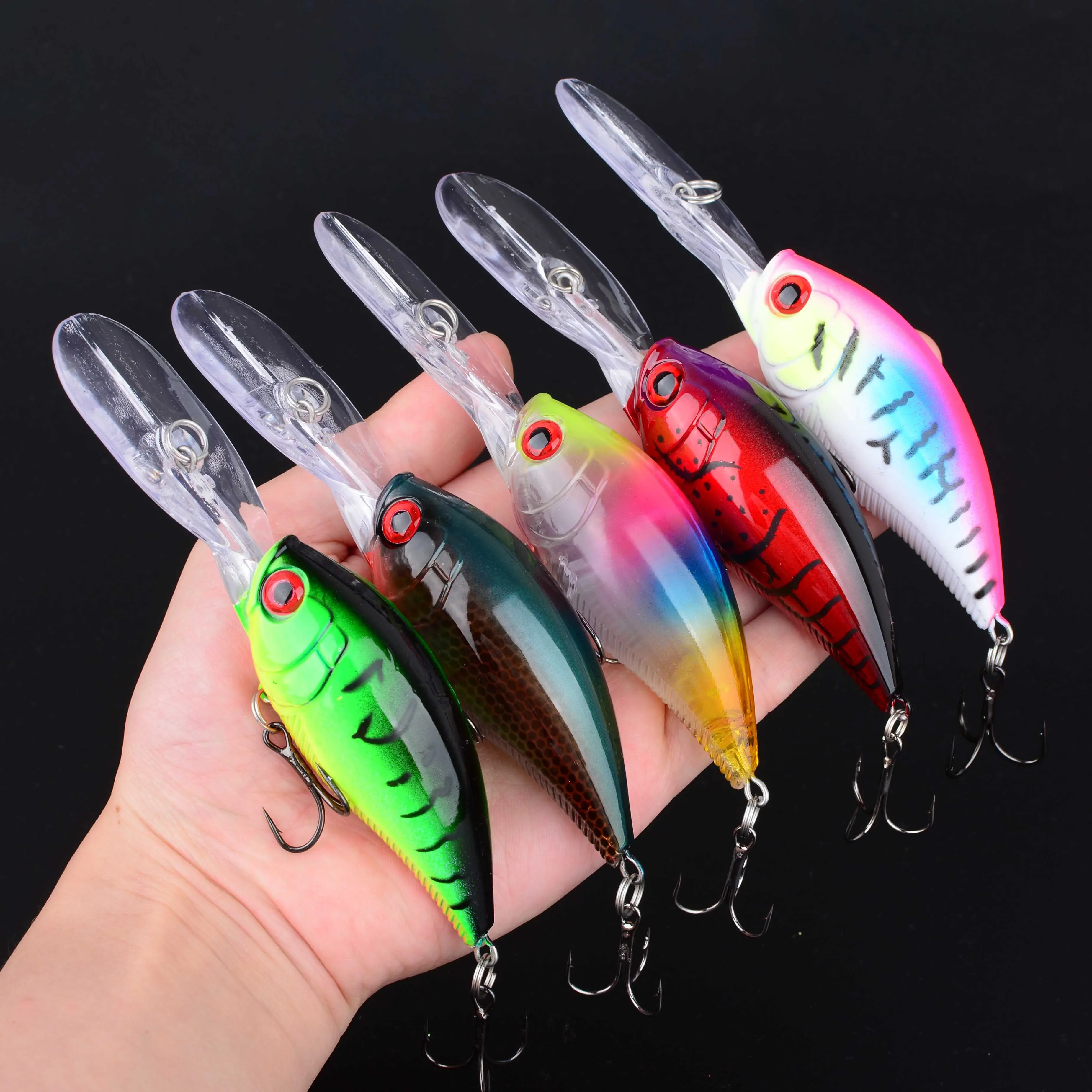 Señuelo de Pesca con manivela, cebos duros artificiales, señuelos Crankbait Wobbler, aparejos de Pesca de carpa, Swimbait, anzuelos triples, 10 Uds.