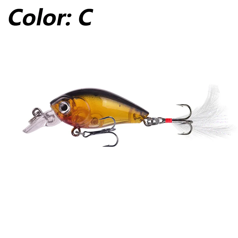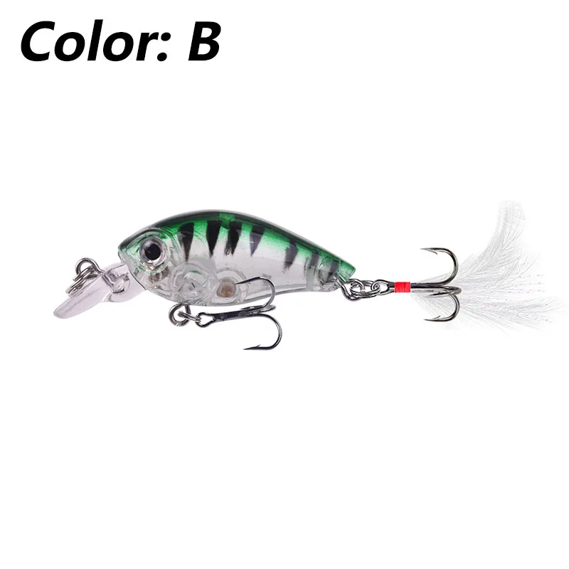 1 Uds. Señuelo de pesca con manivela flotante, anzuelos de plumas realistas de 4,5cm y 3,6g, cebo Artificial duro de plástico para trucha, lubina, Lucio, Crankbaits