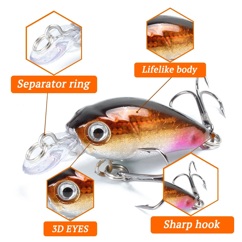 Señuelo de Pesca de manivela flotante, cebo duro Artificial Wobblers Crankbait, carpa, lubina, aparejos de Pesca SwimBait, 4,5 cm, 3,8g, 1 unidad