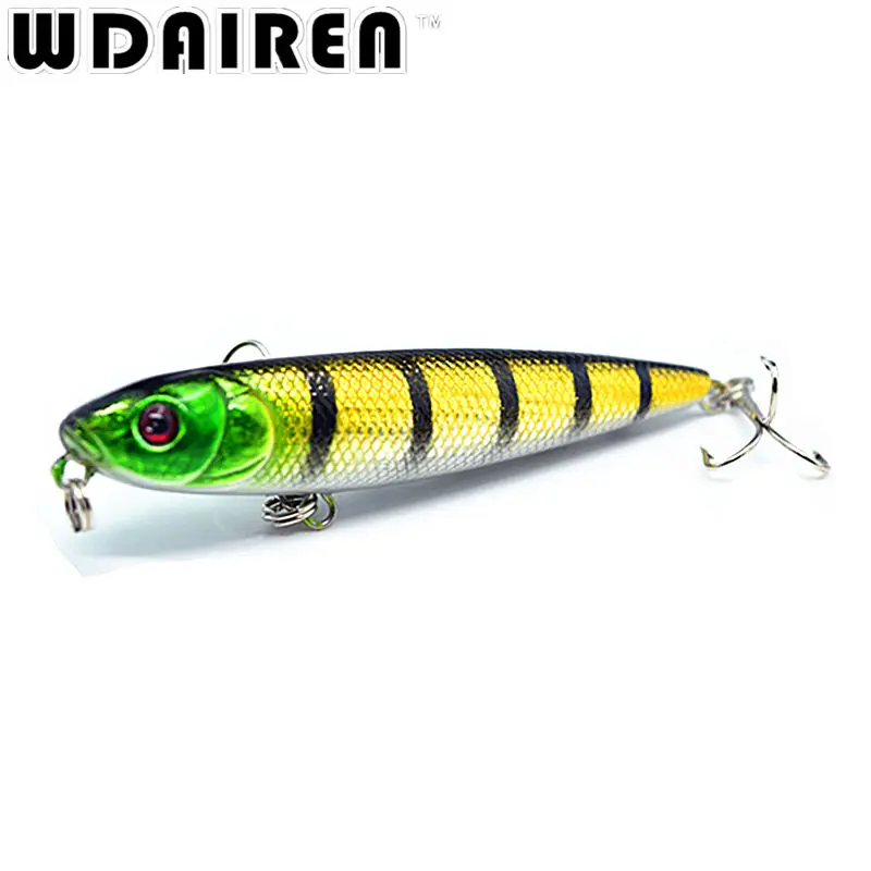 Señuelo de pesca de manivela Minnow, anzuelos triples de níquel negro, hundimiento lento, cebo duro, Jerkbait 6 #, 8cm, 8,6g, 1 unidad