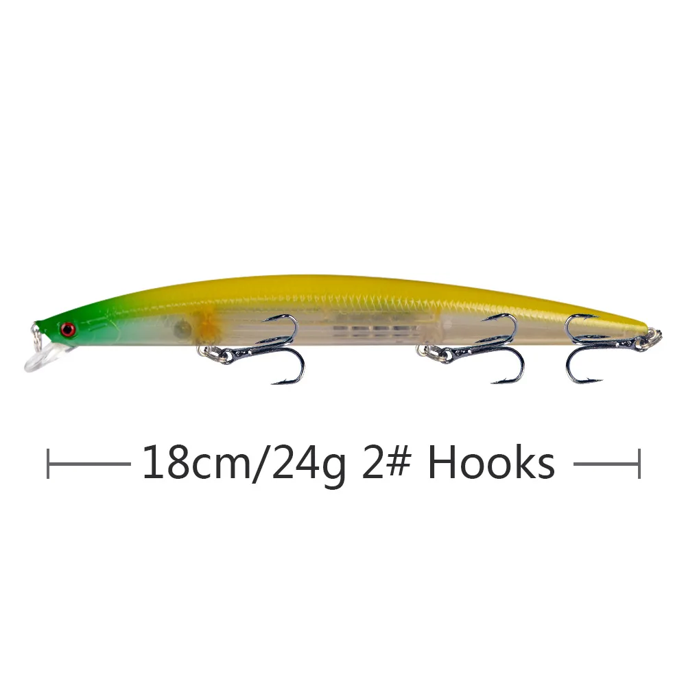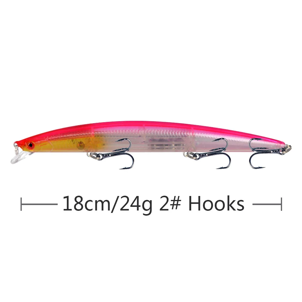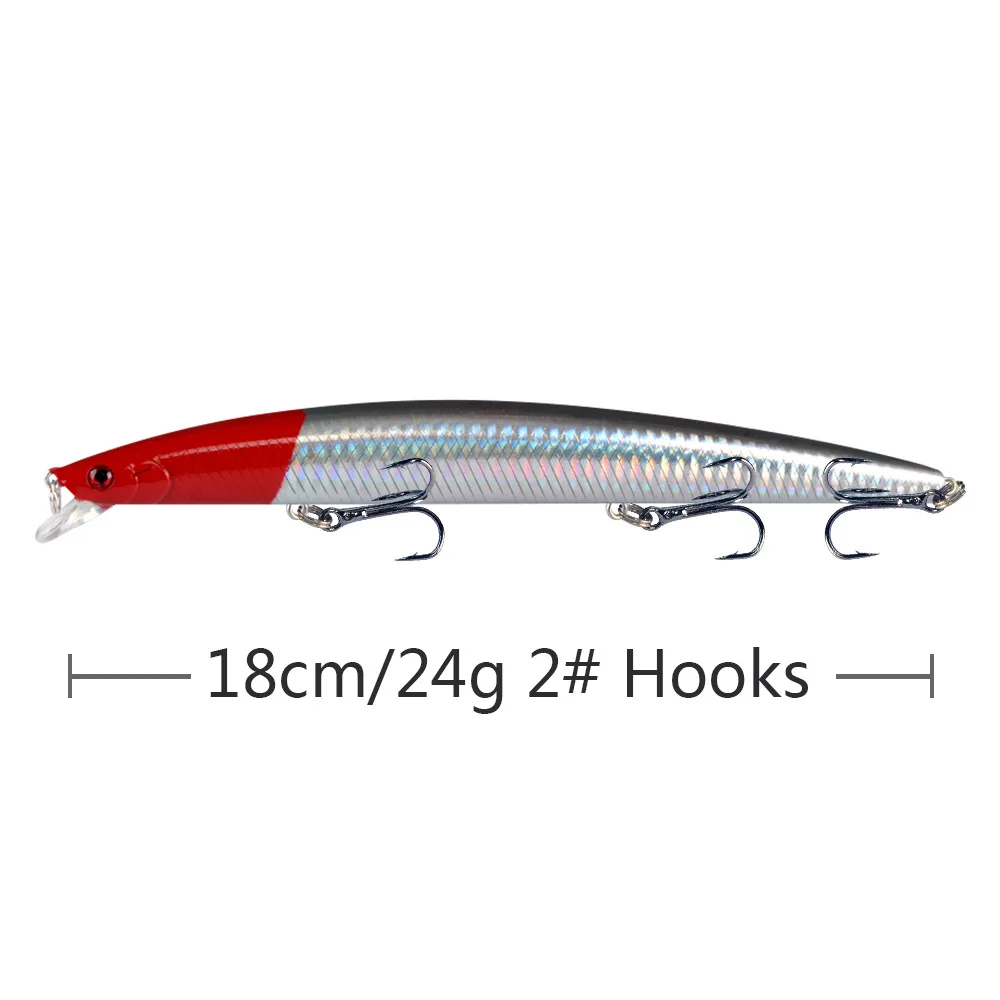 Señuelo de Pesca de Mar Big Long Fish Minnow, ojos 3D, anzuelos fuertes señuelos para pesca en el mar, superventas, 18cm, 24g, 1 pieza