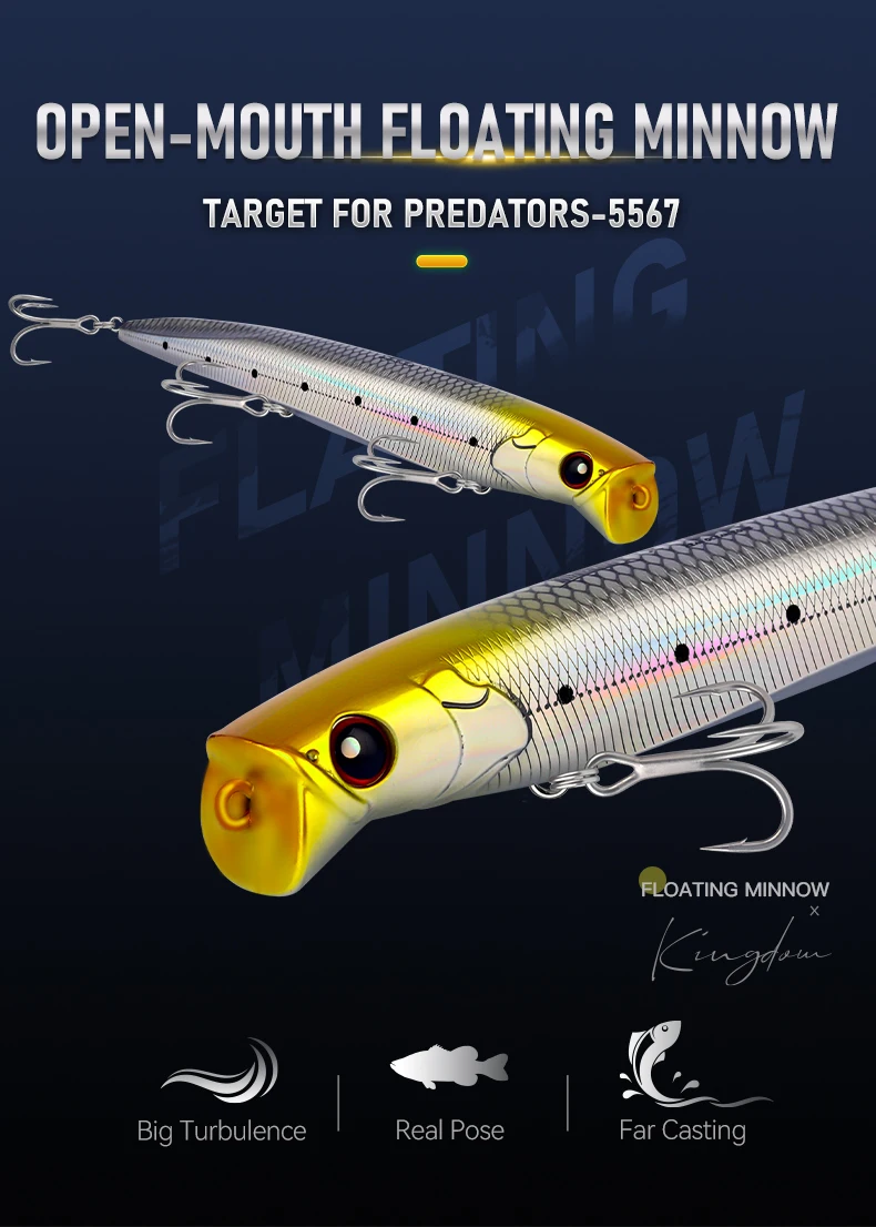 Señuelo de pesca marítimo del Reino, 120mm, 18,4g, cebos duros artificiales de Topwater, señuelos flotantes Popper de Minnow, Wobbler de fundición larga