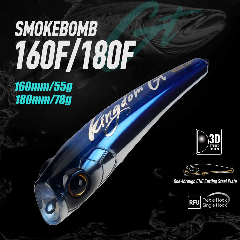 Kingdom Smokebomb Sea Fishing Lure Topwater Popper 55g 78g 160mm 180mm Wobbler Artificial Hard Bait for Sea Tuna GT Fishing Lure