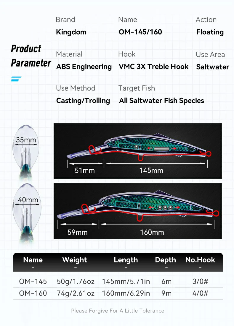 Señuelo de pesca de mar Minnow flotante Kingdom, 50g, 145mm, 74g, 160mm, curricán, fundición lejana, Wobbler Artificial, cebo duro, Jerkbaits de pesca