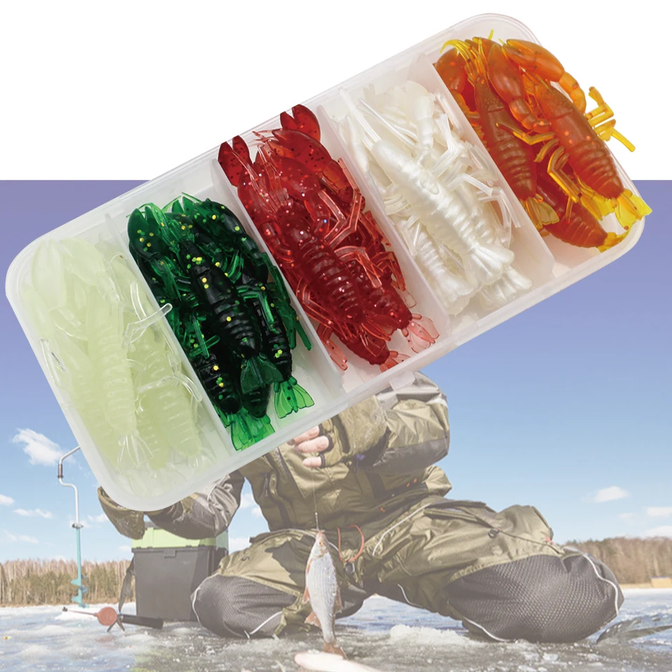 Señuelo de Pesca de Mar suave, anzuelo de pesca de carpa, wobbler, kit de pesca de goma, cebo de silicona, proteína, gusano suave, camarón, 25 unids/caja