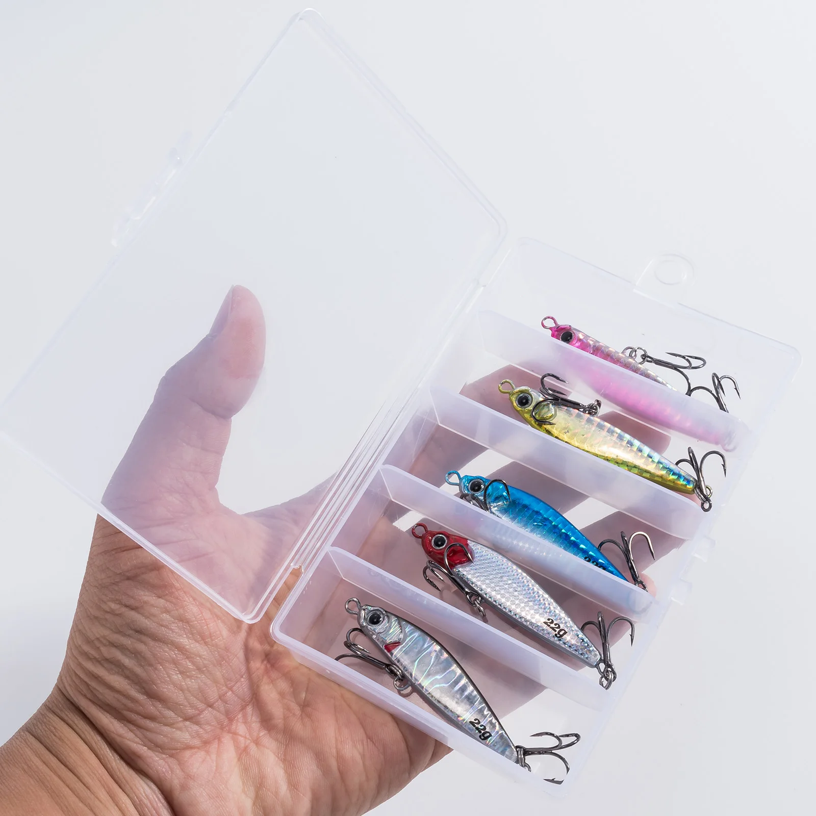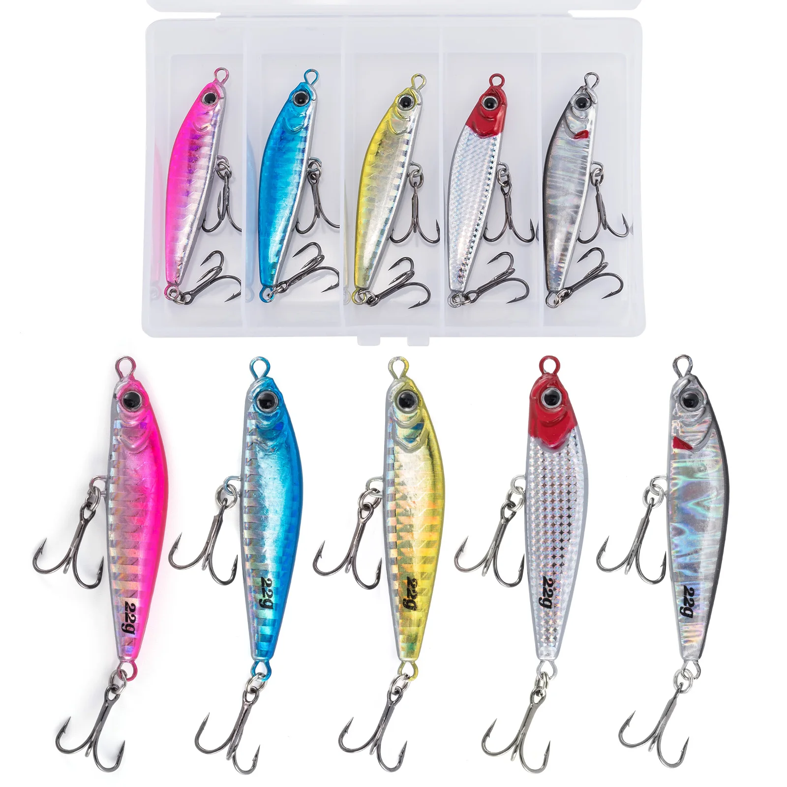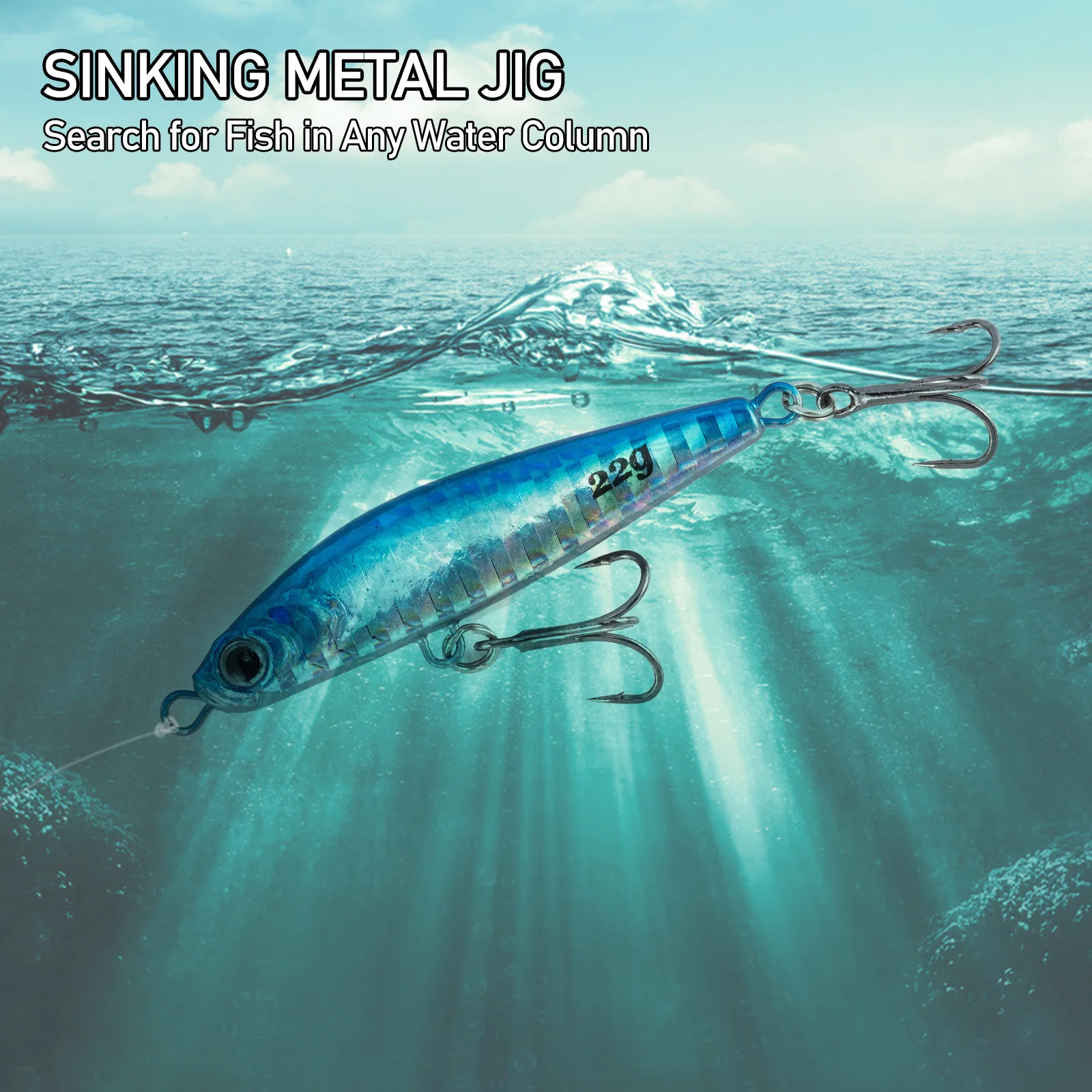 Realista y tentador: con ojos realistas en 3D. La Plantilla de metal adopta el efecto de pintura láser, que puede reflejar la luz en el agua y atraer peces rápidamente. El triple anzuelo afilado puede perforar la presa fácilmente.